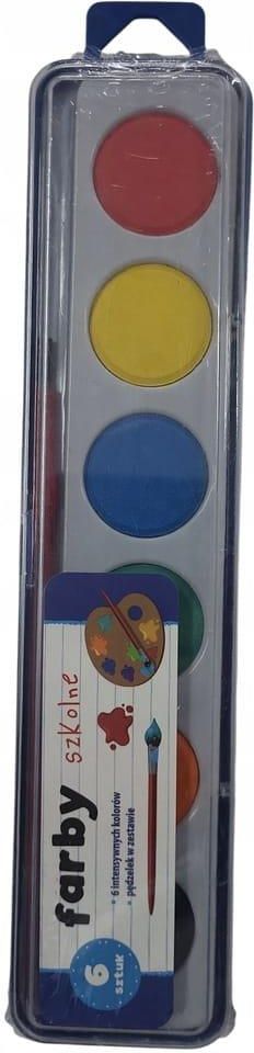 Farby szkolne, farbki plakatowe z pędzelkiem 6 kolorów 6 kolorów pędzelek w zestawie dla dzieci 3+
