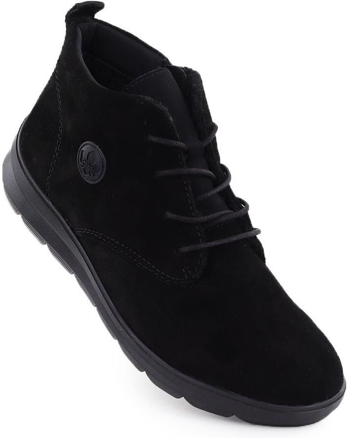 Skórzane botki damskie zamszowe czarne Rieker Z0022-00 Żnin