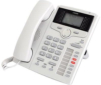 Biznesowy telefon systemowy Slican VoIP podświetlany, graficzny wyświetlacz LCD 2.8" 8 przycisków BLF gniazdo EXT do przyłączenia komputera (wbudowany switch 10-100Mb) możliwość przyłączenia zewnętrznych słuchawek - przewodowych (złącze 4P4C RJ9) przyłączany przewodem RJ45 lub bezprzewodowo (wymaga opcjonalnie montowanego submodułu SM.WIFI1MOD) do sieci Ethernet, zalogowany do zasobów VoIP centrali zasilanie PoE lub z opcjonalnego zasilacza 12V 1,4A kolor szary