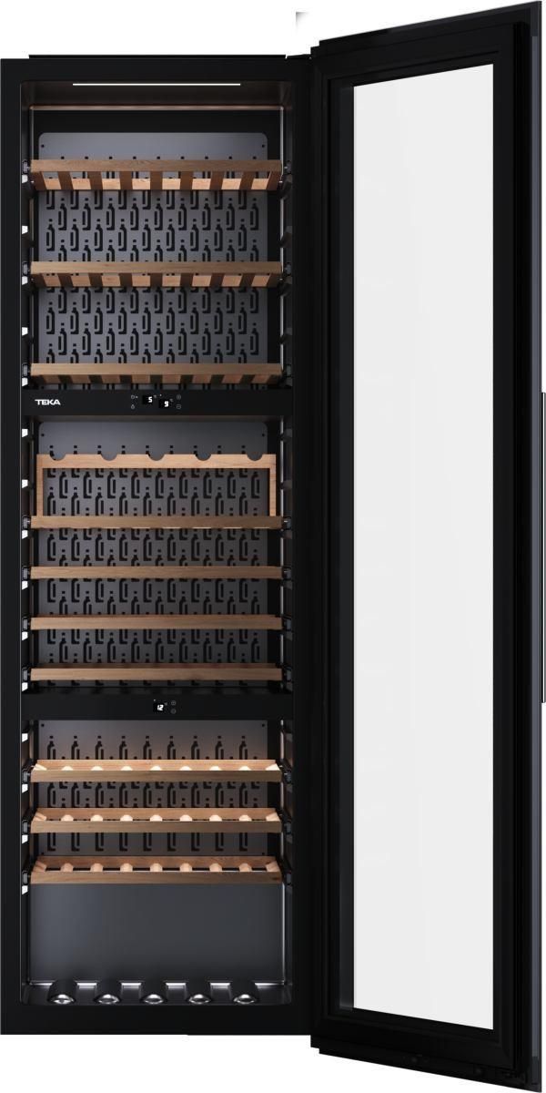 Chłodziarka do wina do zabudowy Teka Sommelier RVI 30097 GBK Chłodziarka do wina do zabudowy na 93 butelki Wyświetlacz panelu sterowania wewnątrz Elektroniczne ustawianie temperatury Pojemność: 93 butelki Regulowana wysokość nóżek z przodu i z tyłu Podświetlenie wnętrza - LED Dane techniczne Chłodziarka do wina do zabudowy, Wyświetlacz panelu sterowania wewnątrz Elektroniczne ustawianie temperatury Pojemność: 93 butelki Regulowana wysokość nóżek z przodu i z tyłu Podświetlenie wnętrza - LED Odwracalne drzwi Klasa klimatyczna: N/ST Całkowita pojemność (brutto/netto): 287/ 246 l Wymiary zewnętrzne Wysokość (mm): 1788 Szerokość (mm): 595 Głębokość (mm): 557 Waga netto (kg): 97 Wymagane wymiary wnęki Nisza w zabudowie (cm): 178 Dane techniczne System chłodzenia: Fan cooling Pojemność całkowita brutto (litry): 287 Roczne zużycie energii (kWh/rok): 162 Klasa klimatyczna: N/ST Poziom hałasu (dB): 38 Zasilanie Częstotliwość (Hz): 50 Zasilanie (V): 220-240 Moc (W): 180 W Zużycie energii (kW/dzień): 0,443835616 Długość przewodu (cm): 1800 Moc oświetlenia: 1,7 Charakterystyka produktu Typ montażu: Do zabudowy Liczba miejsc na butelki: 93 Automatyczne rozmrażanie w części chłodzącej: Tak Elektroniczny panel: Tak Elektronicznie regulowany termostat: Tak Wyświetlacz na drzwiach: Tak Oświetlenie wnętrza: Tak Odwracane drzwi: Tak Uchwyt zewnętrzny: Tak Lampki kontrolne Alarm optyczny: Tak Wyposażenie Liczba półek: 3 for upper compartment, 3+1 display shelves for middle compartment, 3 for lower compartment
