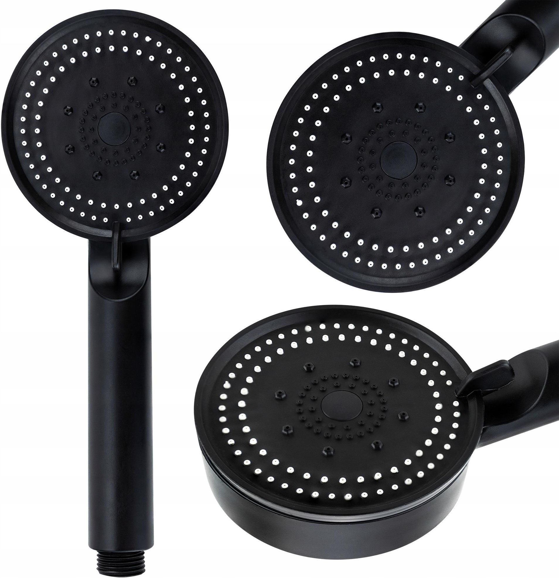 Słuchawka Prysznicowa Natryskowa Do Prysznica Wanny 5 Trybów Okrągła Czarna Specyfikacja Długość: 25,5 cm Średnica: 9 cm Materiał: ABS 5 trybów Kolor: czarny Gwint: 1/2 Słuchawka prysznicowa to jeden z elementów armatury łazienkowej, który narażony jest najczęściej na uszkodzenia mechaniczne i eksploatacje. Warto więc zainwestować w porządny sprzęt, który z pewnością posłuży na długi czas i nie będzie sprawiał kłopotów podczas użytkowania oraz czyszczenia. Wykonana z wysokiej jakości tworzywa sztucznego w kolorze czarnym, który jest odporny na wysoką temperaturę i pęknięcia. Wyposażona w mocne uszczelki, które zapobiegają przeciekaniu wody. Jakość całego produktu sprawia, że kąpiel staje się łatwa oraz przyjemna. Słuchawka posiada gwint, który pasuje do standardowych przewodów prysznicowych. Przeznaczona do podłączenia do natrysku łazienkowego – prysznicowego lub wannowego. Słuchawka posiada miejsce na filtr do oczyszczania wody. Brak filtra w zestawie.