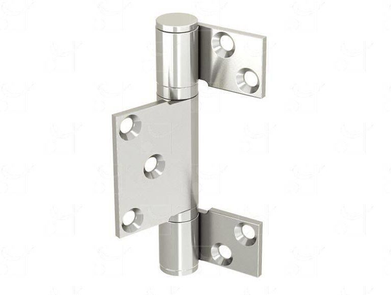 Zawias skrzydłowy z odsadzeniem do drzwi składanych (harmonijkowych). Montowany do krawędzi skrzydła. Nośność 100 kg (dla 3 sztuk). Trzpień Ø10 mm Stal nierdzewna 304L Masa 0,2 kg