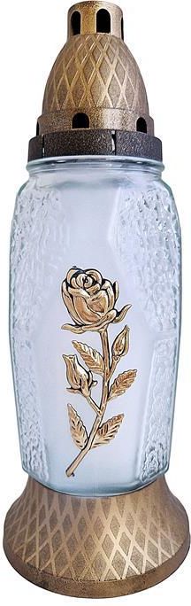 Znicz Szklany Z Wkładem Ze Złotą Różą 068 Cer-Far 29cm Żnin