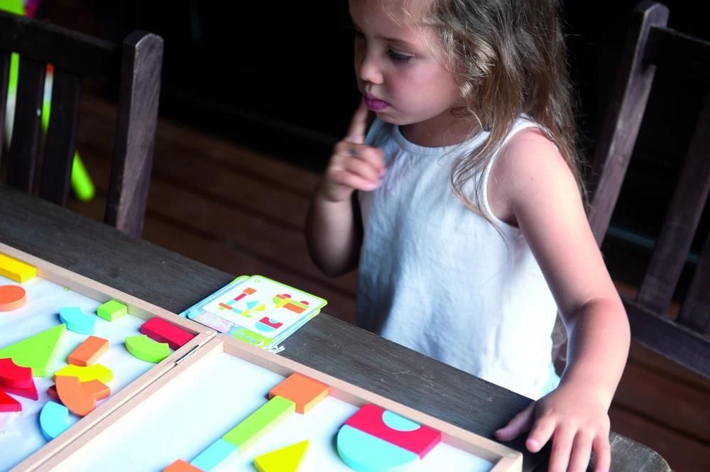 Dla kogo? Pudełko magnetycznych kształtów do tworzenia figur to idealna zabawka dla dzieci w wieku od 3 roku życia, która rozwija ich kreatywność i wyobraźnię. Zabawa magnetycznymi kształtami to także doskonały sposób na naukę rozpoznawania kształtów i kolorów oraz rozwijanie zdolności manualnych, percepcji wzrokowej i koordynacji wzrokowo-ruchowej. Dzieci, które bawią się magnetycznymi klockami, uczą się jednocześnie cierpliwości i skupienia uwagi ze względu na konieczność precyzyjnego dopasowania do siebie elementów. Rozwijanie motoryki małej to kluczowy element rozwoju dziecka w tym wieku, a magnetyczne kształty są doskonałym narzędziem do ćwiczenia tej umiejętności. Pudełko magnetycznych klocków do tworzenia figur to zabawka, która zapewni dziecku wiele godzin dobrej zabawy i jednocześnie przyczyni się do jego rozwoju. [ikony-produktu-opisy] Dlaczego warto? Rozwój percepcji wzrokowej i koordynacji wzrokowo-ruchowej Magnetyczne kształty są idealnym środkiem służącym do rozwijania percepcji wzrokowej dzieci. Dzięki zróżnicowanym elementom maluch może ćwiczyć rozpoznawanie i identyfikację kształtów oraz kolorów. Zabawa z magnetycznymi kształtami pomaga także w rozwijaniu koordynacji wzrokowo-ruchowej, co jest bardzo ważne w procesie nauki czytania, pisania oraz w innych czynnościach wymagających skupienia uwagi i precyzji ruchów. Rozwój motoryki małej Magnetyczne kształty są także doskonałym narzędziem do rozwijania zdolności motorycznych małych dzieci. Dzięki pracy z małymi kształtami dziecko rozwija precyzję ruchów palców, co jest szczególnie ważne w procesie nauki pisania i rysowania. Kształtowanie orientacji przestrzennej Zabawka znajdzie zastosowanie podczas ćwiczeń orientacji przestrzennej w przedszkolu i klasie 1 szkoły podstawowej. Z pomocą zabawki dziecko może określać położenie poszczególnych elementów obrazka względem siebie, a także wykonywać dyktanda graficzne. Wykonując tego typu ćwiczenia, dziecko utrwala także słownictwo związane z orientacją przestrzenną (określenia typu: „nad”, „pod”, „za”, „pomiędzy” itp.). Pomysły na zabawę Dyktando obrazkowe – utrwalanie orientacji przestrzennej i określeń z nią związanych, rozwój spostrzegawczości, motoryki małej, percepcji wzrokowej, koordynacji wzrokowo-ruchowej, ćwiczenie precyzji ruchów, utrwalanie kolorów i kształtów Dziecko układa na tablicy elementy według instrukcji dorosłego. W poleceniach powinna się znaleźć informacje na temat kształtu i koloru przedmiotu oraz jego dokładnego położenia. Gdy dziecko ułoży cały obrazek, otrzymuje kartę z wzorem i sprawdza, czy ilustracja została prawidłowo ułożona. Zgadnij, co to? – rozwój percepcji wzrokowej, utrwalanie kolorów i kształtów, nauka spostrzegawczości i logicznego myślenia Dziecko wybiera z wzorów jedną kartę i układa znajdujący się na niej wzór na tablicy. Musi być on niewidoczny dla reszty dzieci, których zadaniem jest odgadnięcie, jaki obrazek został ułożony. Reszta wzorów zostaje rozłożona przed dziećmi tak, aby wszystkie obrazki były dobrze widoczne. Dzieci zadają pytania mające na celu naprowadzenie ich na poprawną odpowiedź, np.: „jaki kolor/kształt znajduje się na samej górze obrazka?”, „czy jest to zwierzę?”, „czy z dołu po lewej stronie jest kolor pomarańczowy?” itp. Pytania nie mogą być zbyt konkretne, typu: „czy to jest motyl?” lub „czy to jest rakieta?”. Dziecko, które odgadło wzór jako pierwsze, może wybrać kolejną kartę i zabawa zostaje powtórzona według tych samych zasad. Co zawiera? 42 magnetyczne kształty, 24 karty z wzorami, drewniane pudełko z uchwytem do przechowywania. Główne informacje Materiał: drewno. Wymiary produktu: 28,6 x 28,6 x 3,8 cm. Wiek: 3+. Zabawka posiada certyfikat CE oraz FSC.