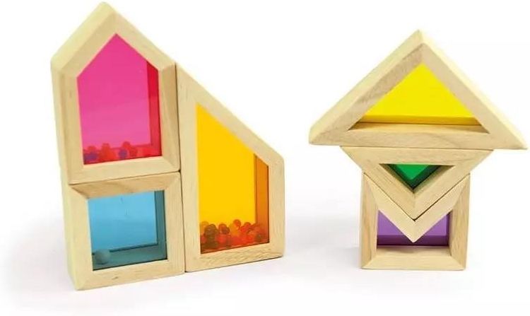 Dla kogo? Transparentne dźwiękowe kolorowe klocki to zabawka przeznaczona dla dzieci od 18 miesiąca życia. Mogą być one atrakcyjne dla dzieci w różnym wieku oraz dla osób o zróżnicowanych zdolnościach i zainteresowaniach. Ten ciekawy zestaw klocków oferuje wiele możliwości rozwoju i radości dla szerokiego spektrum użytkowników. Dla najmłodszych dzieci klocki stanowią wspaniałe narzędzie edukacyjne, które rozwija ich zdolności poznawcze, sensoryczne i manipulacyjne. Kształty i kolory klocków przyciągają ich uwagę, a przezroczysty materiał umożliwia im obserwację, jak światło przenika przez elementy. To zachęca do eksploracji i rozwija zmysł wzroku oraz percepcję przestrzenną. Dla starszych dzieci zestaw ten oferuje możliwość rozwoju kreatywności, logicznego myślenia i umiejętności konstrukcyjnych. Ponadto klocki mogą być również atrakcyjne dla osób o różnorodności funkcjonalnej. Dla dzieci z zaburzeniami sensorycznymi zestaw ten może stanowić wsparcie w rozwijaniu zdolności percepcyjnych, poprzez eksplorację różnych dźwięków, kształtów i kolorów. Osoby z zaburzeniami koncentracji czy autyzmem mogą znaleźć w tych klockach narzędzie do treningu skupienia uwagi i zdolności koncentracji. Transparentne klocki są idealnym produktem dla dzieci w różnym wieku i o różnych potrzebach rozwojowych. To wspaniała zabawka edukacyjna, która rozwija zdolności poznawcze, sensoryczne, manualne i kreatywne. [ikony-produktu-opisy] Dlaczego warto? Rozwój percepcji wzrokowej Przezroczyste kształty i różne kolory klocków oferują atrakcyjne bodźce wizualne. Dzieci mogą rozwijać percepcję wzrokową poprzez obserwowanie, jak światło przenika przez klocki i tworzy fascynujące efekty. Różnorodność kształtów i kolorów pozwala dzieciom odkrywać i porównywać różnice między nimi, co rozwija umiejętność rozpoznawania wzorców i różnicowanie szczegółów. Rozwój percepcji słuchowej Kolorowe klocki oferują doświadczenia dźwiękowe, które wspierają rozwój zmysłu słuchu u dzieci. Wewnątrz klocków znajdują się małe kuleczki, które generują różne dźwięki, co pobudza zainteresowanie i zdolność do rozpoznawania różnic dźwiękowych. Dzięki zabawce dzieci mogą eksperymentować z dźwiękami, rozwijać umiejętność rozróżniania dźwięków oraz doskonalić swoje zdolności słuchowe. Rozwijanie zdolności manualnych Manipulowanie i układanie klocków wymaga precyzyjnych ruchów palców, co stymuluje koordynację ręka-oko oraz kontrolę nad ruchami dłoni. Dzieci będą miały okazję doskonalić swoje umiejętności manipulacyjne, takie jak chwytanie, obracanie, przekładanie i układanie klocków. Poprzez wykonywanie tych czynności dzieci rozwijają precyzję ruchów oraz siłę mięśni dłoni. Pomysły na zabawę Układanie według kształtu – rozwój percepcji wzrokowej, słuchowej i motoryki małej Przygotuj kartkę z narysowanymi konturami kształtów. Poproś dziecko, aby przed dopasowaniem każdego klocka potrząsnęło nim i wsłuchało się w dźwięk, jaki wydają kolorowe elementy w środku. Następnie zadaniem dziecka jest odnalezienie odpowiedniego miejsca na kartce i dopasowanie klocka do jego kształtu. W ten sposób dziecko uczy się rozpoznawania form geometrycznych, ćwiczy spostrzegawczość, koordynację wzrokowo-ruchową oraz koncentrację. Tworzenie dźwiękowych sekwencji – rozwój zmysłu słuchu, kreatywności i poczucia rytmu Poproś dzieci, aby ułożyły klocki w różne kombinacje, tworząc sekwencje dźwiękowe. Mogą eksperymentować z różnymi dźwiękami i ich kolejnością, tworząc rytmiczne sekwencje. Muzyka i ruch – rozwój percepcji słuchowej, motoryki dużej, poczucia rytmu, kreatywności Poproś dzieci, aby potrząsały klockami i poruszały się zgodnie z dźwiękami, które emitują kuleczki. Na przykład, gdy ruchy kuleczek są powolne, dzieci mogą się skręcić w dół, a gdy kuleczki poruszają się szybko, dzieci mogą podskakiwać do góry. Układanie figur – rozwój motoryki małej, percepcji wzrokowej, koordynacji wzrokowo-ruchowej, rozwój kreatywności, wyobraźni i logicznego myślenia Poproś dzieci, aby używały klocków do tworzenia różnych figur geometrycznych. Mogą tworzyć prostokąty, kwadraty, trójkąty i wiele innych. Możesz podać wzory do naśladowania lub zachęcić dzieci do tworzenia własnych unikalnych wzorów. Jak bawić się panelem świetlnym? Sprawdź nasz artykuł na blogu klikając w obrazek. Główne informacje Materiał: drewno. Liczba elementów: 6. 3 elementy zawierają kuleczki emitujące dźwięki. Wymiary produktu: 21,5 x 16 x 4,5 cm. Wiek: +18 miesięcy. Zestaw posiada certyfikat CE i FSC.