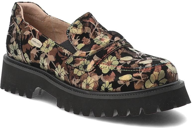 Brązowe Półbuty Laura Vita Eleganckie Wzorzyste Mokasyny Damskie Żory