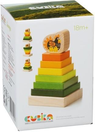 PIRAMIDA PIRAMIDKA DREWNIANA WIEŻA ZESTAW KLOCKI EDUKACYJNE UROCZA KURKA KLOCKI WIEŻA PIRAMIDA Kolorowe klocki do budowy wieży to zestaw konstrukcyjny, pozwalający na tworzenie piramidy. Składa się z 8 elementów klocków, które można łączyć ze sobą w taki sposób, by tworzyć stopniowo rosnącą, trójwymiarową konstrukcję. Każdy z klocków posiada dziurkę dzięki czemu można go wygodnie umieścić na drewnianej podstawce. U samej góry można umieścić element z motywem uroczej kury! Klocki są zwykle wielokolorowe i posiadają różne wymiary, co umożliwia zbudowanie piramidy złożonej z wielu warstw. Dzięki zróżnicowanym elementom, dzieci mogą ćwiczyć swoje zdolności manualne, rozwijać wyobraźnię przestrzenną oraz kreatywność. Budowanie piramidy z klocków nie tylko zapewnia radość z tworzenia trójwymiarowych struktur, ale także pomaga w rozwijaniu umiejętności logicznego myślenia, planowania oraz tworzenia konstrukcji. Te klocki są nie tylko ciekawą zabawką, lecz również narzędziem wspierającym rozwój umiejętności poznawczych i manualnych u dzieci, zachęcając do eksperymentowania z różnymi wzorami i kształtami. Drewniana zabawka uczy rozpoznawania kształtów i kolorów, rozwija zdolności motoryczne i logiczne myślenie. Wymiary opakowania: 13x9x9 cm 18 m+ Liczba elementów: 8 KLOCKI WIEŻA PIRAMIDA Kolorowe klocki do budowy wieży to zestaw konstrukcyjny, pozwalający na tworzenie piramidy. Składa się z 8 elementów klocków, które można łączyć ze sobą w taki sposób, by tworzyć stopniowo rosnącą, trójwymiarową konstrukcję. Każdy z klocków posiada dziurkę dzięki czemu można go wygodnie umieścić na drewnianej podstawce. U samej góry można umieścić element z motywem uroczej kury! Klocki są zwykle wielokolorowe i posiadają różne wymiary, co umożliwia zbudowanie piramidy złożonej z wielu warstw. Dzięki zróżnicowanym elementom, dzieci mogą ćwiczyć swoje zdolności manualne, rozwijać wyobraźnię przestrzenną oraz kreatywność. Budowanie piramidy z klocków nie tylko zapewnia radość z tworzenia trójwymiarowych struktur, ale także pomaga w rozwijaniu umiejętności logicznego myślenia, planowania oraz tworzenia konstrukcji. Te klocki są nie tylko ciekawą zabawką, lecz również narzędziem wspierającym rozwój umiejętności poznawczych i manualnych u dzieci, zachęcając do eksperymentowania z różnymi wzorami i kształtami. Drewniana zabawka uczy rozpoznawania kształtów i kolorów, rozwija zdolności motoryczne i logiczne myślenie. Wymiary opakowania: 13x9x9 cm 18 m+ Liczba elementów: 8