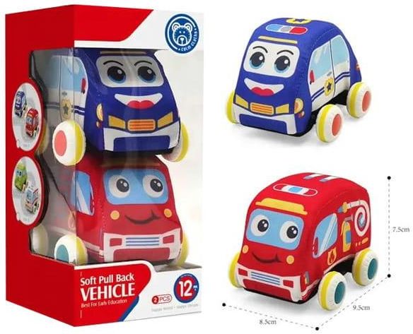 Autka dla niemowląt - straż pożarna i policja Jakie powinno być pierwsze autko dla maluszka? Wykonane z dobrej jakości materiałów, nie posiadające małych elementów które mogą odpaść w trakcie zabawy, odporne na zderzenia, jednym słowem BEZPIECZNE. Takie właśnie są nasze śliczne, mięciutkie i bardzo szybkie autka. Specyfikacja: zestaw 2 sztuk autek wzory autek: policja i straż pożarna miękka obudowa autka koła pokryte gumą – nie rysują powierzchni napęd na naciąg możliwość prania materiału wymiary autka: 8,5cm x 9,5cm x 7,5cm CE, EN-71-1,2,3 Świetna zabawa Samochodziki zostały zaprojektowane z myślą o najmłodszych, ich rozmiar oraz kształt świetnie dopasowuje się do malutkich rączek dzieci przez co mogą bawić się nimi samodzielnie. Mięciutkie nadwozie autka nie wyrządzi żadnych szkód w przypadku rzucania zabawką przez dziecko. Zderzenia ze ścianą lub meblami również nie stanowi problemu dla naszego autka, a koła zabezpieczone dodatkową warstwą gumy nie rysują podłóg nawet przy bardzo mocnym dociśnięciu autka. Rodzice mogą spać spokojnie nie martwiąc się o zniszczenia. Autko posiada bardzo mocny napęd z delikatnym naciągiem który pozwala pokonać autku spory dystans. Nawet najmniejsze dzieci bez problemu są w stanie naciągnąć i wprawić w ruch samochodzik. Mięciutka obudowa autka jest przymocowana za pomocą rzepa, takie rozwiązanie pozwala odczepić ją i wyprać w przypadku zabrudzenia.