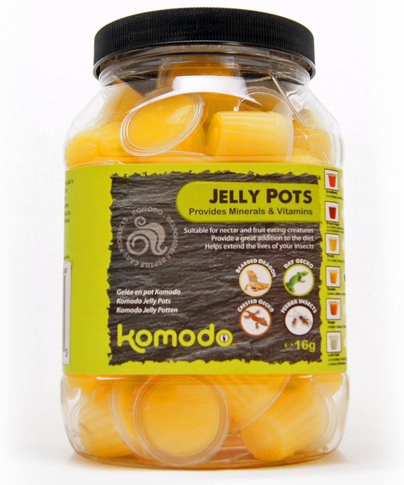 Nektary lub owoce w żelu Jelly Pot's stanowią kompletną dietę dla gadów oraz owadów. Są odporne na wysoką i niską temperaturę oraz na wysoką i niską wilgotność. Jest to idealne rozwiązanie dla utrzymania zbilansowanej diety oraz do podawania różnorodnych smaków, a w tym witamin i minerałów całkowicie dopasowując się do potrzeb zwierzęcia. Oprócz diety dla gadów i owadów hodowlanych Jelly Pot's to wygodny sposób na zapewnienie dobrze odżywionego żywego pokarmu (karmówki), co z kolei dostarcza gadom owady z zawartością składników odżywczych. Smak: - Banan Dostarcza witamin: - witamina A - witamina C Produkt specjalnie dedykowany dla: - gekon orzęsiony (Correlophus ciliatus) - agama brodata (Pogona vitticeps) - gekon lamparci (Eublepharis macularius) - felsuma madagaskarska (Phelsuma madagascariensis) - wszystkie żółwie wodno-lądowe - wszystkie owady (świerszcze, chrząszcze, karaluchy i krocionogi) Dawkowanie: Dzięki wygodne formie w kształcie i konsystencji, Jelly Pot może być po prostu umieszczony w terrarium lub w pojemniku z karmówką. Opakowanie w kształcie słoika zawiera 60 sztuk Jelly Pot Dostępne są następujące smaki: banan, miód, truskawka, mango, melon, wapno o smaku czerwonych winogron Komodo - od 20 lat obecni na rynku Wielkiej Brytanii. Pokarmy i witaminy ich produkcji są najlepiej sprzedającymi się pokarmami w Europie zachodniej, a ich produkty cieszą się uznaniem herpetologów i hodowców na całym świecie. Komodo, dzięki swojemu zaangażowaniu w tworzeniu najlepszej klasy produktów, od lat jest absolutnym liderem jakości produktów terrarystycznych. Marka współtworzona jest przy współudziale hodowców z Wielkiej Brytanii od lat wyznacza nowe trendy pośród producentów produktów terrarystycznych, a zwłaszcza pożywienia i witamin.