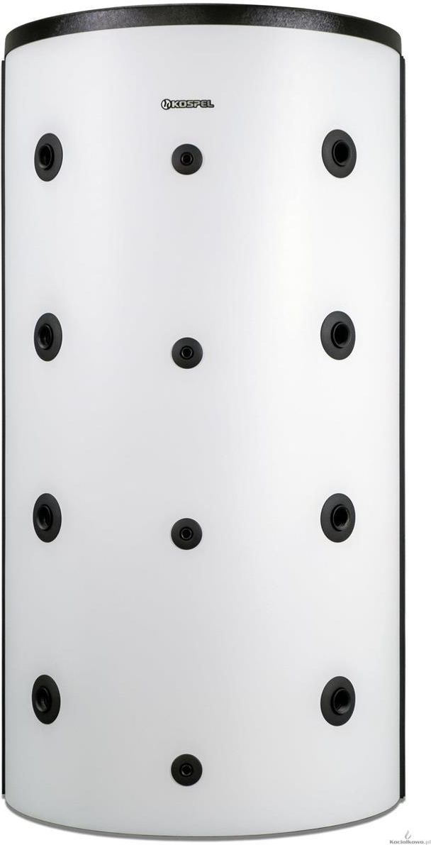 Zbiornik buforowy KOSPEL SV-800 stojący bez wężownicy SV-800.1 Zbiornik buforowy nieemaliowany SV Zbiorniki buforowe serii SV to praktyczne rozwiązanie do instalacji centralnego ogrzewania, które umożliwia gromadzenie i efektywne zarządzanie energią cieplną. Dzięki konstrukcji nieemaliowanej oraz dużej pojemności, bufor doskonale sprawdza się w instalacjach z kilkoma źródłami ciepła – może współpracować jednocześnie np. z dwoma kotłami i instalacją solarną, zapewniając stabilną i wydajną pracę systemu. Urządzenie wyposażono w nowoczesną izolację cieplną, wykonaną z włókien poliestrowych pochodzących w całości z recyklingu. Takie rozwiązanie minimalizuje straty energii, a jednocześnie jest przyjazne środowisku. Dodatkowym atutem jest prosty i szybki montaż – izolacja bufora posiada praktyczną listwę zamykającą, która ułatwia instalację nawet w ograniczonych przestrzeniach. Zbiorniki buforowe o pojemnościach od 200 do 1000 litrów. Wysoka jakość izolacji cieplnej Eko-efektywna izolacja bufora zapewnia minimalne straty energii dzięki wykonaniu z włókien poliestrowych pochodzących w 100% z recyklingu. Obsługuje kilka źródeł ciepła Doskonale nadają się do gromadzenia ciepła z kilku źródeł, np. z 2 kotłów i instalacji solarnej. Szybki montaż Izolacja bufora zapewnia szybki montaż dzięki wygodnej listwie zamykającej. Dane techniczne: pojemność: 795 l ciśnienie znamionowe (zbiornik): 0,3 MPa grubość / materiał / rodzaj izolacji: 100 / WPOL / R