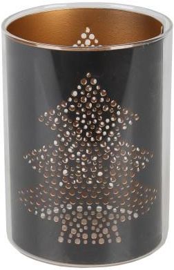 LAMPION SZKLANY Z CZARNYM METALOWYM WKŁADEM W CHOINKI 9x9x12 cm Żory