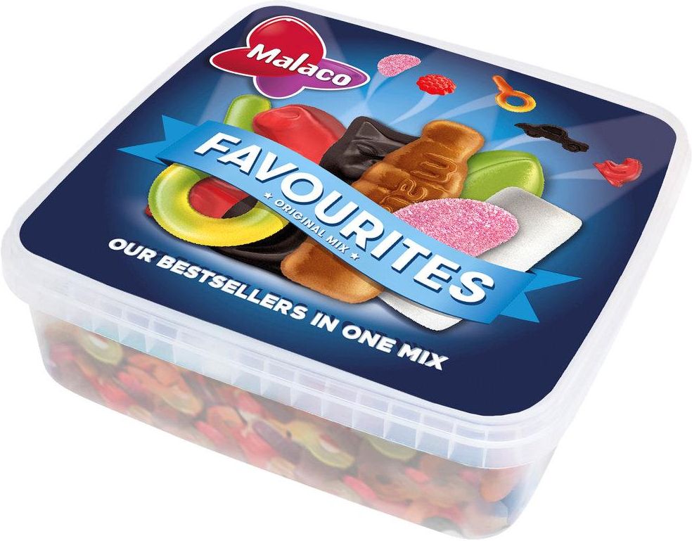 Każdy dzień będzie udany z Favourites marki Malaco! To pudełko z mieszanką Original Mix zawiera słodkie, kwaśne i słone żelki.