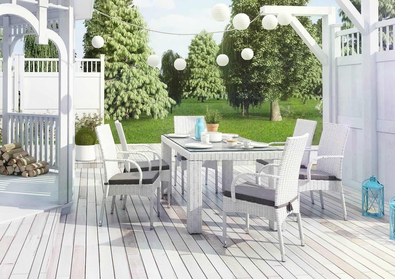Meble ogrodowe RAPALLO 160cm royal białe Prostota stołu Rapallo i niewymuszona elegancja krzeseł TRAMONTO tworzą duet idealny. W pozornie surowych, nieskomplikowanych formach zestawu mebli z technorattanu Rapallo 160 kryje się ponadczasowe piękno, które nada Twojej przydomowej przestrzeni …