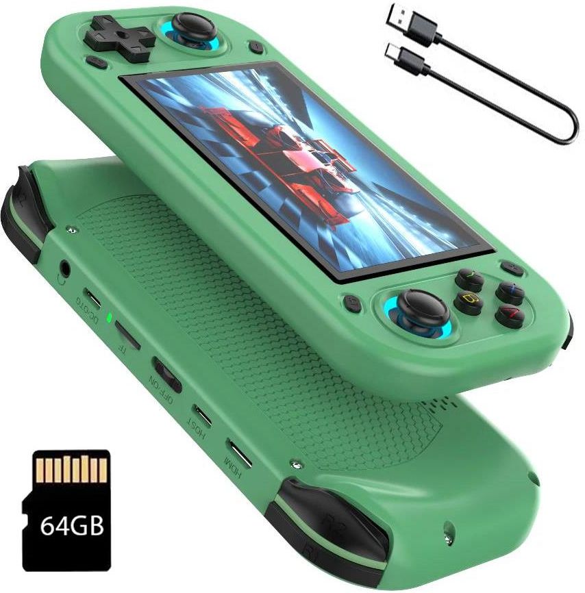 Przenośna konsola R43S emulator video game 20000 gier 64GB 4,3" KONSOLA R43S 64GB | 4,3” IPS | LINUX | PODŚWIETLANE JOYSTICKI RGB Powrót do kultowych klasyków w nowoczesnej odsłonie Pamiętasz emocje towarzyszące grom z dzieciństwa? Proste, ale niezwykle wciągające tytuły, które potrafiły pochłonąć na długie godziny? Dzięki Konsoli R43S możesz ponownie zanurzyć się w świat retro, zyskując jednocześnie pełnię wygody oraz nowoczesnych funkcji.Model R43S oferuje wiele wgranych gier, intuicyjne menu w języku polskim oraz duży, czytelny ekran 4,3” IPS, zapewniający komfortowe granie w każdym miejscu.Obsługa gier z konsoli: ARCADE, PSP, PSX, ATARI7800, MAME, FC, GB, GBA, GBC, MD, SFC, N64 I WIELE INNYCH !Kolor: Zielony Dlaczego warto wybrać Konsolę R43S? Ponad 20 000 gier – ogromna kolekcja klasyków i hitów, gotowych do uruchomienia od razu po włączeniu.⭐ Obsługa 20+ emulatorów – jedno urządzenie zastępuje wiele legendarnych konsol, oferując pełną różnorodność rozgrywki.⭐ Duży ekran 4,3” IPS – wygodne i wyraźne granie, znacznie lepsze niż na standardowych konsolach retro.⭐ Wysoka wydajność – procesor RK3128 i GPU Mali-400MP2 zapewniają płynne działanie wszystkich tytułów.⭐ Podświetlane joysticki RGB – nowoczesny wygląd z możliwością wyłączenia podświetlenia.⭐ Menu w języku polskim – szybka i intuicyjna obsługa dla każdego użytkownika.⭐ Mocna bateria 2000mAh – idealna do podróży i długiej rozgrywki bez ładowania. Konsola posiada takie hity jak: God of War, Metal Gear Solid, Crash Bandicoot, - zagraj w klasyczne gry retro w każdej chwili! Odkryj stare gry na nowo! Gry gotowe do uruchomienia Dzięki dołączonej karcie pamięci 64GB, otrzymujesz natychmiastowy dostęp do ogromnej kolekcji klasyków i hitów wielu generacji. Konsola R43S obsługuje ponad 20 emulatorów, dzięki czemu zagrasz w produkcje z legendarnych platform. Duży ekran 4,3” – wyrazisty obraz i wysoki komfort gry Wyświetlacz IPS 4,3” gwarantuje wyraźny obraz, żywe kolory i szczegółową grafikę. To idealny kompromis między mobilnością a wygodą użytkowania – świetny zarówno w podróży, jak i podczas rozgrywki na co dzień. IDEALNY PREZENT DLA OSÓB KTÓRE TĘSKNIĄ ZA STARYMI DOBRYMI KLASYKAMI Graj, gdzie chcesz i kiedy chcesz Dzięki kompaktowym wymiarom, wydajnej baterii 2000mAh oraz wielkiej bibliotece gier, Konsola R43S gwarantuje świetną zabawę na długie godziny – w podróży, w pracy, w domu lub na wyjeździe. Nowoczesny procesor i wydajna praca W konsoli zastosowano wydajny procesor RK3128, 4-rdzeniowy Cortex-A7, 1,3 GHz, wspierany przez Mali-400MP2, co przekłada się na płynność działania emulatorów i stabilne działanie. Podświetlane joysticki RGB – efektowny design i personalizacja Konsola posiada podświetlane drążki sterujące RGB, które dodają jej nowoczesnego charakteru.Istnieje możliwość wyłączenia podświetlenia, jeżeli wolisz bardziej klasyczny wygląd lub dłuższy czas pracy na baterii. Z naszą konsolą wrócisz do lat młodości! Konsola obsługuje wiele emulatorów⭐ Wszystkie urządzenia od Gameboy po PSP!⭐ Karta pamięci posiada wgrane ponad 20000 gier takich jak: (Tanks - Czołgi, Crash Bandicoot, Hity z Automatów, Hity z konsol PSP i PSX i tysiące innych hitów) Graj w domu i na dużym ekranie Wyjście Mini HDMI – HDMI, który umożliwia wygodne podłączenie konsoli do telewizora. To doskonała opcja, gdy chcesz cieszyć się klasykami na dużym ekranie – solo lub z rodziną. (brak w zestawie) Przejrzysta lista gier i łatwa nawigacja Poruszanie się po menu konsoli i znajdowanie gier jest niezwykle proste i łatwe, dzięki czemu urządzenie jest przeznaczone zarówno dla dorosłych jak i dla dzieci. Szybko znajdziesz gry, których szukasz! Dzięki przejrzystemu podziałowi biblioteki gier na listę wszystkich gier, urządzenia bądź wyszukiwanie tekstowe szybko i łatwo znajdziesz gry, których szukasz! Specyfikacja ⭐ System operacyjny: Linux ⭐ Emulatory: ponad 20 obsługiwanych platform Procesor: RK3128, 64-bit, 4-rdzeniowy Cortex-A7, 1,3 GHz GPU: Mali-400MP2 (500 MHz) RAM: 4GB ROM: 4GB EMMC ⭐ Wyświetlacz: 4,3 cala IPS HD (480x272 px), pełna laminacja OCA ⭐ Bateria: 2000mAh do 4 godzin działania Zasilanie: 5V/2A ⭐ Pamięć: karta microSD 64GB z ponad 20 000 grami (możliwość rozbudowy do 256GB – karta nie zawarta) ⭐ Podświetlenie joysticków: RGB (z możliwością wyłączenia) Menu: w języku polskim Złącza: USB-C, mini HDMI, microSD, słuchawkowe ⭐Obsługa gier: pełna kompatybilność z emulatorami wielu klasycznych konsol ⭐Emulatory: PSP, PSX, N64, MAME, GB. GBA, GBC, MEGADRIVE, GAMEGEAR, SEGAGENESIS, i wiele innych Wymiary: 180 x 82 x 30 mm Waga: 330 g Zwartość zestawu Konsola R43S Kolor Zielony Karta pamięci 64GB Kabel USB-C do ładowania Folia ochronna na ekran Estetyczne pudełko Opis Konsoli 3D Joystick Lewy Podświetlenie RGB Kontroler D-Pad Wudowany akumulator polimerowy Wybór Kolorowy ekran 4,3 cala Start Przyciski zmiany gośności Przyciski funkcyjne 3D Joystick Prawy Górne klawisze L1/2 R1/2 Wjście mini HDMI Wyjście Host Wyłacznik / włacznik Slot na karty MicroSD Dioda poziomu naładowania Wejscie USB-C do ładowania Wyjście AUX
