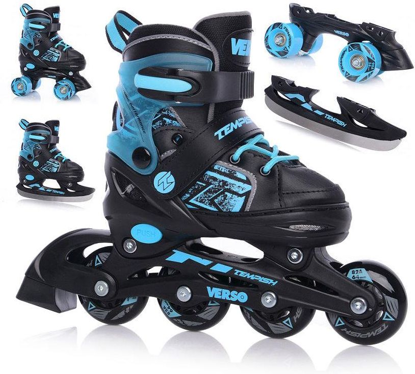 Wrotki TEMPISH Verso Triple II VERSO II triple to multifunkcyjne 3 w 1 Wrotki, rolki i łyżwy z regulowanym w 3 stopniach rozmiarem. Zestaw w kolorze czarno-niebieskim jest wyposażony w łyżwę hokejową, natomiast różowo-biały komplet jest wyposażony w łyżwę do jazdy figurowej. Model Verso Triple II …
