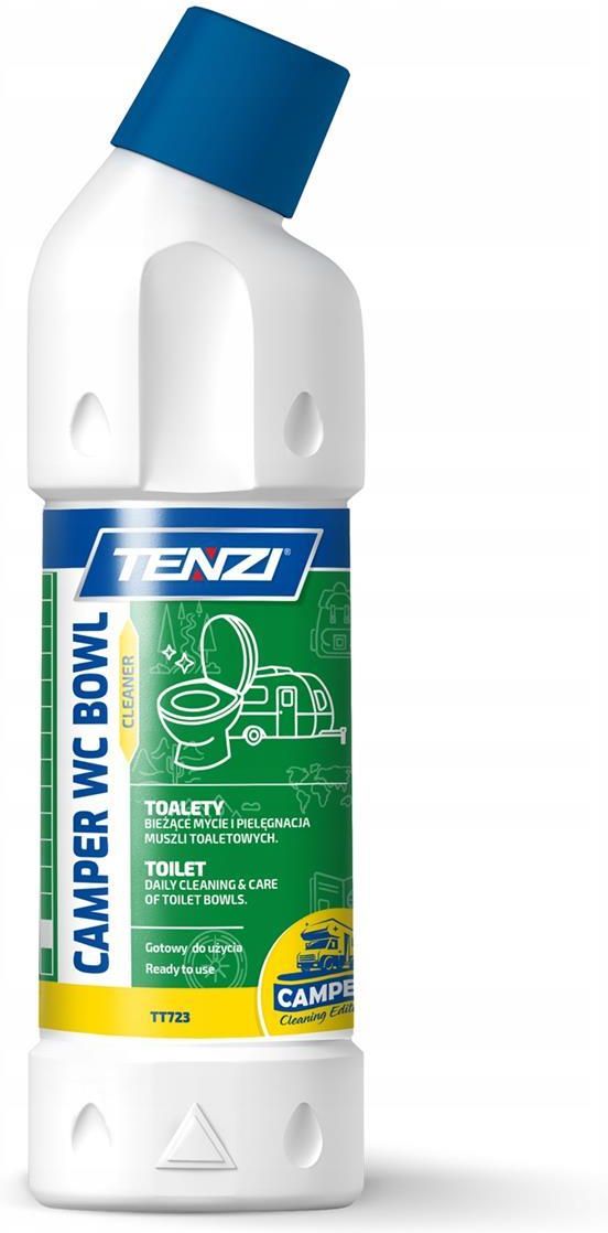 TENZI CAMPER WC Bowl Cleaner - Płyn do toalet turystycznych 0,75L Camper WC Bowl to preparat przeznaczony do codziennego mycia sanitariatów, który skutecznie usuwa zanieczyszczenia pochodzenia nieorganicznego, takie jak nacieki wodne, kamień, rdzę oraz resztki mydeł. Jego formuła jest bezpieczna dla stali szlachetnej, a jednocześnie nadaje powierzchniom higieniczną czystość i lśniący połysk. Idealny do regularnej pielęgnacji, zapewnia utrzymanie łazienki w idealnym stanie, bez ryzyka uszkodzeń. Camper WC Bowl to specjalistyczny preparat stworzony z myślą o codziennym myciu i pielęgnacji sanitariatów, który zapewnia skuteczne usuwanie zanieczyszczeń pochodzenia nieorganicznego, takich jak nacieki wodne, kamień, rdza oraz resztki mydeł. Dzięki swojej zaawansowanej formule produkt ten doskonale radzi sobie z trudnymi zabrudzeniami, pozostawiając powierzchnie idealnie czyste i lśniące. Jego delikatna, ale skuteczna formuła jest bezpieczna dla stali szlachetnej, co czyni go idealnym wyborem do pielęgnacji nowoczesnych łazienek, w których często stosuje się ten rodzaj wykończeń. Camper WC Bowl to produkt, który nie tylko usuwa zabrudzenia, ale także zapewnia higieniczną czystość, co jest niezwykle ważne w przypadku toalet, gdzie gromadzenie się bakterii i osadów może stanowić problem. Regularne stosowanie preparatu pomaga utrzymać powierzchnie w doskonałym stanie, zapobiegając osadzaniu się kamienia i innych zanieczyszczeń, a jednocześnie nadaje sanitariatom lśniący połysk, dzięki czemu łazienka zawsze wygląda świeżo i estetycznie. Stosowanie Camper WC Bowl jest bardzo proste i szybkie, co czyni go idealnym rozwiązaniem do codziennej pielęgnacji. Wystarczy nanieść żel bezpośrednio na powierzchnię muszli klozetowej, pozostawić na 2-5 minut, aby formuła mogła zadziałać, a następnie przeszorować powierzchnię szczotką. Na zakończenie wystarczy spłukać wszystko wodą, aby cieszyć się idealnie czystą toaletą. Produkt jest niezwykle skuteczny i przy regularnym stosowaniu pomaga utrzymać łazienkę w perfekcyjnej czystości bez ryzyka uszkodzenia powierzchni. Camper WC Bowl to niezastąpiony preparat dla osób, które cenią sobie skuteczność, bezpieczeństwo i wygodę w codziennym dbaniu o higienę w łazience. Dzięki swojemu delikatnemu działaniu, ale wysokiej skuteczności, pozwala utrzymać muszle klozetowe i inne elementy sanitariatów w idealnym stanie, zapewniając jednocześnie długotrwały efekt czystości i blasku.