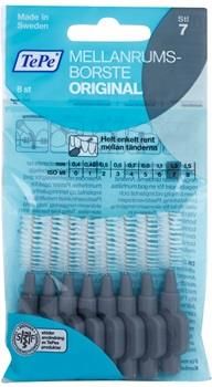 TePe Original, 8 szt., Szczoteczki międzyzębowe dla mężczyzn, Szczoteczka międzyzębowa TePe Original jest niezbędnym przyborem do higieny jamy ustnej. Dostaje się także do trudno dostępnych miejsc, zapobiegając powstawaniu próchnicy zębów. Właściwości: doskonale usuwa zanieczyszczenia z przestrzeni międzyzębowych zapewnia profilaktykę paradontozy czyści trudno dostępne miejsca w jamie ustnej Sposób użycia: Włóż szczoteczkę do przestrzeni międzyzębowej i wyczyść ruchem do przodu i do tyłu.