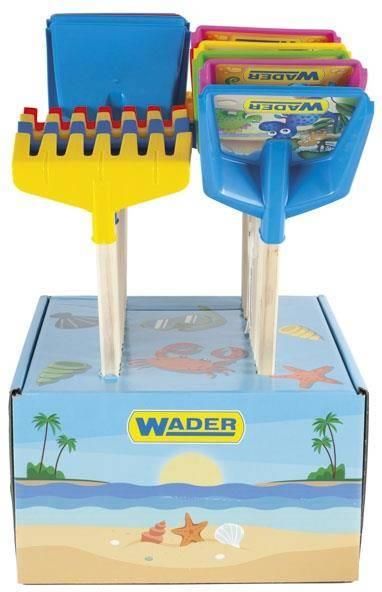 72302 WADER - Grabie, łopatka długie na drewnianym trzonku, mixŁopatka/Grabie z serii Happy Summer to niezbędne akcesorium do zabawy dla każdego dziecka. Nie może się bez niej odbyć żadna wyprawa do piaskownicy, ogrodu czy na plażę. Łopatka posiada umieszczoną na szufli kolorową grafikę wykonaną przy użyciu technologii IML (wtopiona bezpośrednio w plastik, dzięki temu ciekawe, wesołe obrazki nie ulegną zniszczeniu, nie będą się ścierać i nie wyblakną pod wpływem temperatury czy słonej wody). Zabawka dostępna jest w kilku wersjach kolorystycznych. Zabawa w piasku, kopanie tuneli, budowanie zamków to jedne z bardziej ulubionych zajęć najmłodszych pobudzające ich kreatywność i wyobraźnię. Bawiąc się w ten sposób dzieci rozwijają swoje umiejętności motoryczne, manualne, koordynację wzrokowo-ruchową oraz myślenie przestrzenne. Jest to również bardzo dobry moment, aby zaprosić do zabawy rówieśników, co ma pozytywny wpływ na rozwój umiejętności społecznych naszych pociech. Części plastikowe wykonane są z wysokiej jakości, odpornego na warunki atmosferyczne tworzywa. Całość jest starannie wykończona i bezpieczna w użytkowaniu.Najważniejsze cechy produktu: nadruk IML na szufli łopatki drewniany trzonek zabawka odpowiednia dla dzieci od 1 roku życia kolor wysyłany losowo przeznaczony dla dzieci 1+ grafika lub układ kolorów zabawek może różnić się od przedstawionych na zdjęciach Wader-Woźniak jest wiodącym polskim producentem zabawek dla najmłodszych dzieci. Jako spółka firma istnieje od 30 lat, jednak swoją tradycją sięga lat 60. ubiegłego wieku, kiedy to Ryszard Woźniak zaczął produkować pierwsze zabawki. W 1990 roku powstała firma „Wader-Woźniak sp. z o.o.” jako joint-venture dwóch rodzinnych firm o wieloletniej tradycji w produkcji zabawek – niemieckiej „Hermann Wader Spielwarenfabrik” oraz polskiego zakładu rzemieślniczego, którego twórcą był Ryszard Woźniak. W 2012 r. niemiecka firma ogłosiła upadłość, a rodzina Woźniaków wykupiła udziały partnerów w przedsiębiorstwie i od 4 września 2012 firma Wader-Woźniak jest przedsiębiorstwem w 100% polskim. Firma Wader-Woźniak dba, by jej produkty inspirowały do twórczej zabawy, sprzyjały aktywności, odkrywaniu nowych umiejętności i przynosiły radość. Gwarantowane jest to testami, jakie przeprowadzają najbardziej wymagający eksperci – dzieci, które wybierają polskie zabawki Wader i sprawdzają je w zabawie w domach, przedszkolach, na podwórkach, każdego dnia na całym świecie!