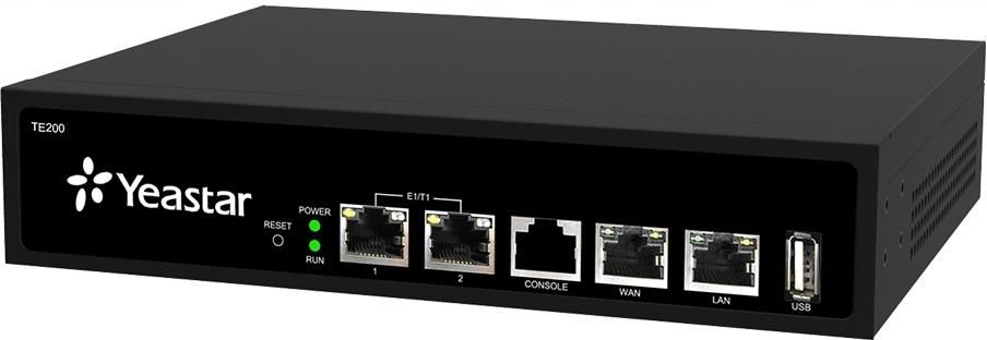 Yeastar TE200 - Bramka VoIP 2xE1 Yeastar TE200 to ekonomiczne rozwiązanie dla małych i średnich firm korzystających ze starszych systemów telefonicznych, zapewniające rozwiązanie VoIP TE100 jest bramką z dwoma portami VoIP E1 / T1 / J1 (VoIP do E1 / T1 / J1, i E1 / T1 / J1 do VoIP), który obsługuje do 30 jednoczesnych połączeń. Jest zaprojektowany, aby wypełnić lukę między E1 / T1 / J1 i VoIP. Integracja TE200 z istniejącą siecią umożliwi niedrogą komunikację poprzez trunking SIP. Ilość portów E1/T1/J1: 2 Support PRI, MFC R2, SS7, E&M 1 port LAN: 10/100Mbps 1 port WAN: 10/100Mbps 1 port: USB Port konsolowy Protokół: SIP (RFC3261) Warstwa transportowa: UDP, TCP, TLS, SRTP Kodeki: G.711 (alaw/ulaw), G.722, G.726, G.729A, GSM, ADPCM, Speex Redukcja szumów: ITU-T G.168 LEC Echo Cancellation, Dynamic Jitter Buffer Tryb DTMF: RFC2833, SIP Info, In-band Sieć: DDNS, Firewall, PPPoE, Static IP, QoS, Static Route Protokoły sieciowe: FTP, TFTP, HTTP, HTTPS, SSH Standard PRI: Euro ISDN, nation, Q.SIG Firmware upgrade by HTTP/TFTP Konfiguracja: Web-based Zasilanie: AC 100-240V (12V/2A)