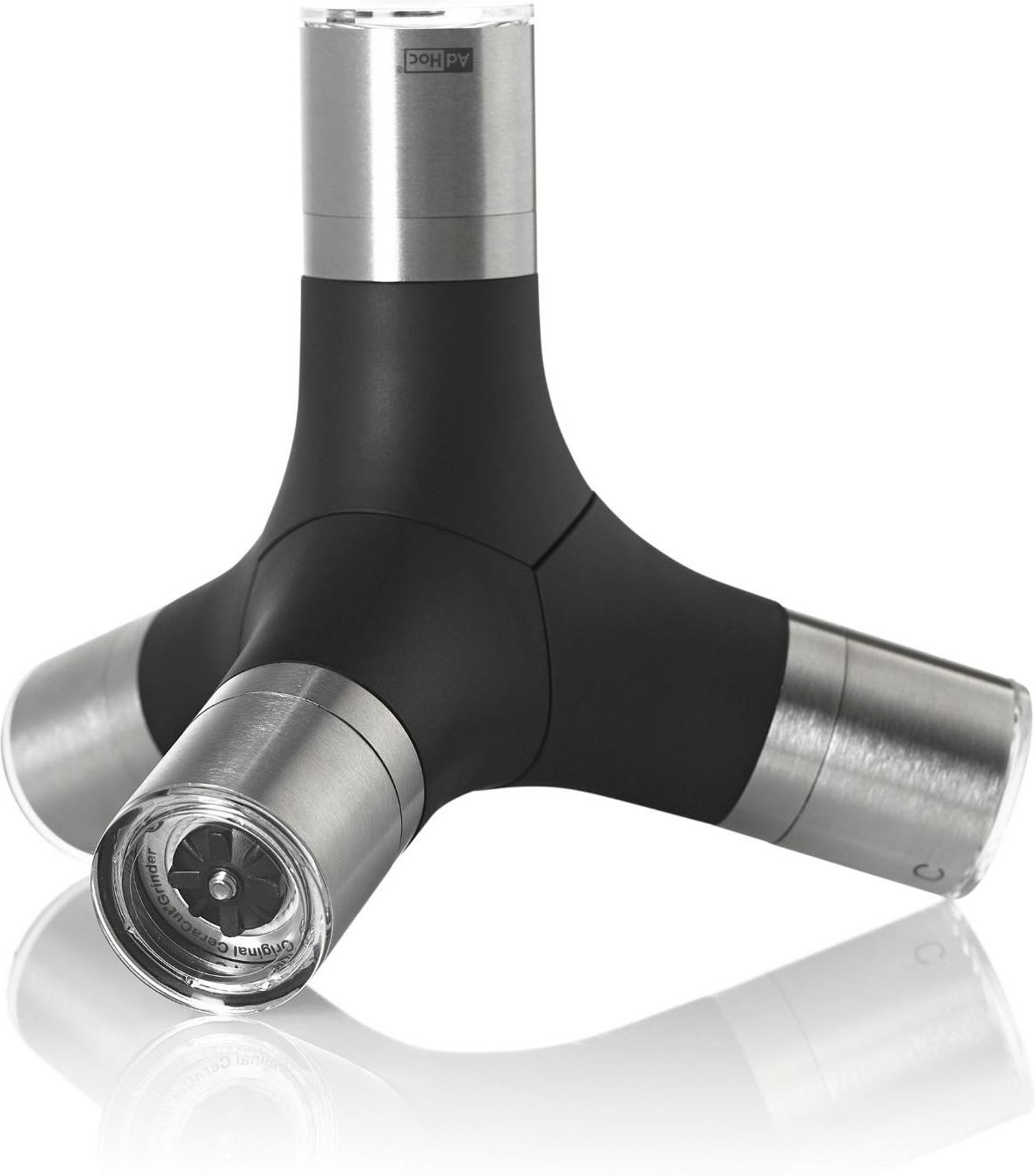 Magnetyczny multi młynek do pieprzu, soli i chilli GIANT AdHoc Specyfikacja produktu Stan: Nowy Producent: AdHoc Kod producenta: AH-MP440 EAN: 4037571390656 Opis produktiu Trzy małe młynki i jeden krajacz do chili złączone mocnymi magnesami w jeden duży młynek to doskonałe połącznie funkcjonalności z ekscentrycznym designem. Młynek łączy w sobie walory użytkowe i dekoracyjne. Jeśli wolisz, w każdej chwili możesz go rozdzielić na cztery małe młynki. Młynki wyposażone zostały w ceramiczne żarna CeraCut® , krajacz do chilli w opatentowane ostrza PreciseCut®, które pokroją papryczki na bardzo drobne płatki. Młynki do pieprzu i soli posiadają płynną regulację grubości mielenia w szerokim zakresie co pozwoli ci przyprawić jak lubisz. Młynek zaleca się myć ręcznie. Produkt został zaprojektowany przez AdHoc Design Team oraz Rolanda Kreitera.