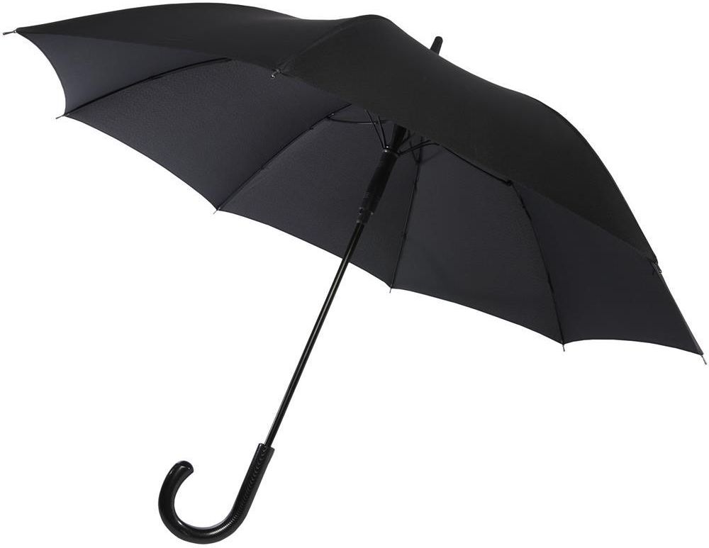 Parasol z funkcją automatycznego otwierania z czaszą wykonaną z poliestru pongee i z solidnym metalowym trzonkiem w kolorze czarnym. Wysokiej jakości pełny stelaż z włókna szklanego zapewnia maksymalną elastyczność przy wietrznej pogodzie. Zakrzywiona rączka z wykończeniem o optyce karbonowej i …