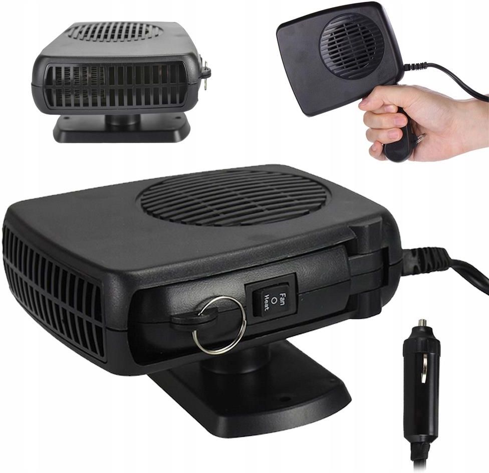 NAGRZEWNICA SAMOCHODOWA FARELKA GRZEJNIK 200W 12V Nagrzewnica samochodowa zasilana jest przez standardową wtyczkę samochodową 12V to idealne urządzenie na chłodne lub gorące dni. Dzięki funkcji chłodzenia i grzania, urządzenie będzie bardzo przydatne w lecie jak i w zimę. W nagrzenicy zastosowano grzałkę ceramiczną , dzięki której termowentylator generuje ciepło w kilka sekund po jego włączeniu. Koniec ze skrobaniem szyb i marznięciem do czasu nagrzania się silnika samochodu. Farelka to niezbędna rzecz podczas zminowych poranków gdy mamy zamarźnięte szyby. Dzięki rączce i długiemu kalowi możemy bezproblemu wykorzystać farelkę do odszronienia szyb w samochodzie. Farelka posiada w podstawie regulowany statyw, który pozwala na dogodne ustawienie kąta nachylenia. Statyw mocowany jest za pomocą śrubek montażowych lub taśmy dwustronnej dołączonych do zestawu. FUNKCJE PRZEŁĄCZNIKA FARELKI Pozycja: Fan - funkcja chłodzenia Pozycja: Heat - funkcja grzania Pozycja: o - farelka jest wyłączona WYMIARY FARELKI Szerokość: 12,5cm Długość: 13cm Wysokość: 7,5cm Długość rączki: 9cm SPECYFIKACJA TECHNICZNA Kod produktu: 24200 Moc: 200W Ceramiczna technologia Posiada funkcje grzania i chłodzenia Zasilanie: wtyczka samochodowa 12V Długość kabla: około 1m Posiada regulowany uchwyt Kolor: czarny ŚRODKI OSTROŻNOŚCI Z uwagi iż jest to urządzenie elektrycznie pobierające dużą ilość energii elektrycznej, nie należy podłączać nagrzewnicy do instalacji samochodowej nie posiadającej zabezpieczeń przeciw przeciążeniowych. Zaleca się użytkowanie nagrzewnicy wyłącznie na włączonym silniku. Nie należy pozostawiać włączonego urządzenia bez nadzoru. ZESTAW ZAWIERA Fabrycznie nową nagrzewnicę Stojak do nagrzewnicy Dwustronną naklejkę Oryginalne opakowanie