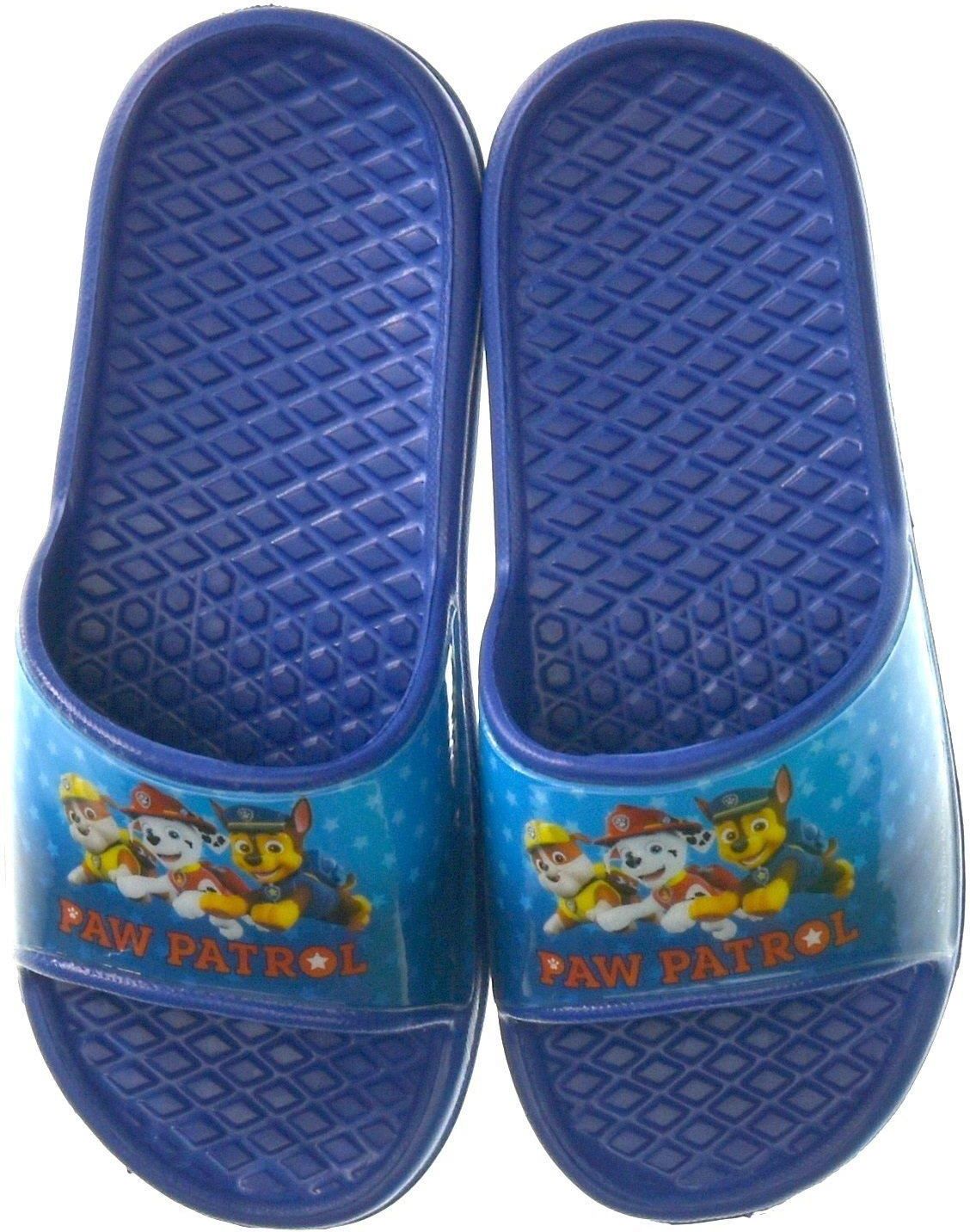 Dziecięce klapki w granatowym kolorze z wizerunkiem bohaterów bajki Psi Patrol. Idealne na plażę, basen czy jako obuwie domowe.