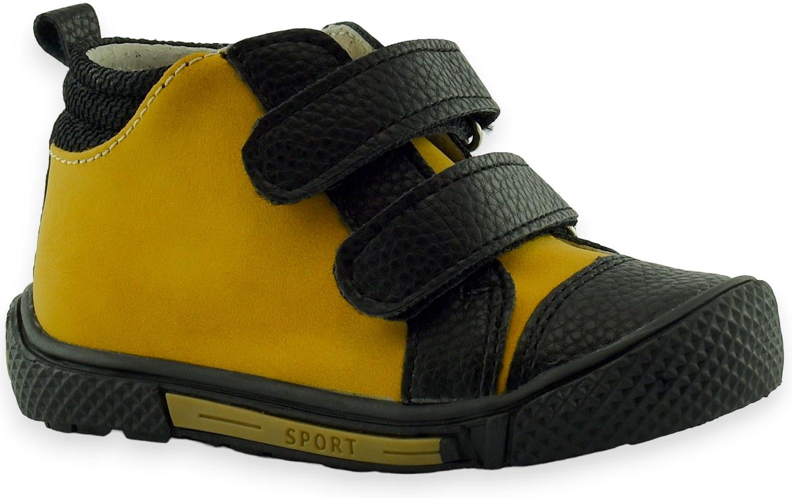 Chłopięce trzewiki na rzep z wygodnym zapięciem na rzepy. Sportowy fason w modnym kolorze jasnego brązu. Szerokie przody zapewnią swobodę małym paluszkom podczas spacerów i zabaw na świeżym powietrzu.