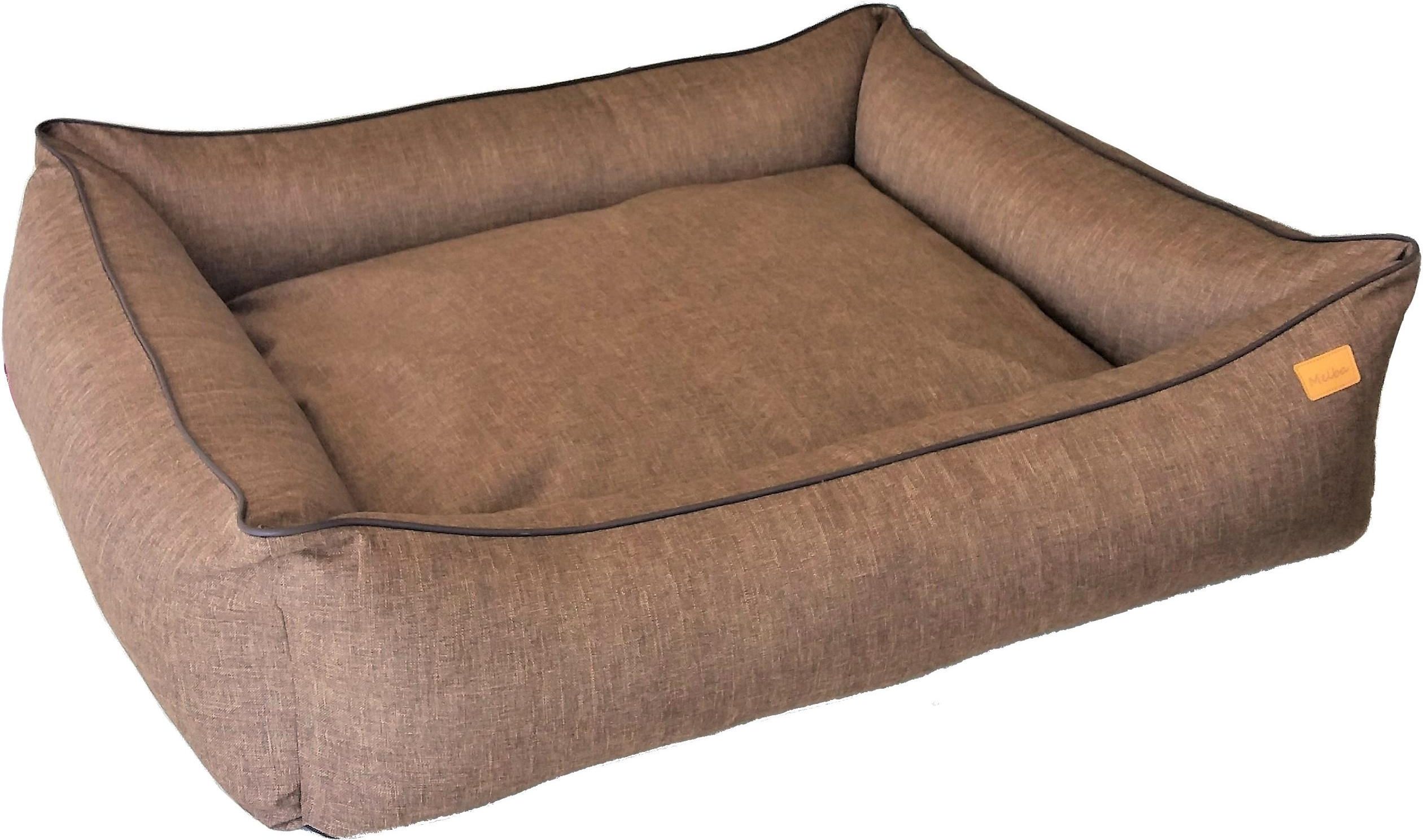 Wysokiej jakości, szyte ręcznie legowisko przeznaczone dla psów średnich ras. Wykonane z trwałego materiału w kolorze brązowym.
