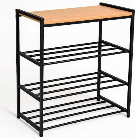 Szafka na buty / stojak na obuwie 4 półki – organizer do przedpokoju LOFT Praktyczna i solidna szafka na buty to idealne rozwiązanie, jeśli chcesz zadbać o porządek w przedpokoju, garderobie czy korytarzu. Ten metalowy stojak na buty z 4 półkami pomieści wiele par obuwia, jednocześnie zajmując niewiele miejsca. Solidna budowa oraz funkcjonalny design sprawiają, że mebel nie tylko ułatwia zachowanie porządku, ale także pełni rolę stylowej dekoracji. Połączenie loftowego charakteru z delikatnie rustykalnym akcentem powoduje, że regał idealnie komponuje się zarówno z nowoczesnym wystrojem, jak i bardziej ✅ Najważniejsze cechy: 4 pojemne półki na buty – miejsce nawet dla kilkunastu par solidna konstrukcja z metalu, malowana proszkowo nowoczesny design w stylu loft / industrial / vintage łatwy montaż – zestaw zawiera wszystkie niezbędne elementy, czas ok. 5 minut kompaktowe wymiary – idealny do małych mieszkań, przedpokojów i garderób ✅ Specyfikacja: Materiał: stal malowana proszkowo Kolor: czarny z drewnopodobnym blatem Wymiary: 61 × 68,5 × 30 cm Montaż: do samodzielnego złożenia (narzędzia w komplecie) ✅ Dlaczego warto? Organizer na buty pomaga utrzymać porządek w przedpokoju. Otwarta konstrukcja ułatwia dostęp do obuwia i pozwala na szybkie wietrzenie. Dzięki minimalistycznej formie świetnie wpasuje się w każde wnętrze – od nowoczesnych po klasyczne. Solidna stalowa konstrukcja malowana proszkowo gwarantuje stabilność i odporność na codzienne użytkowanie. Specyfikacja: Materiał: stal malowana proszkowo + laminowana płyta Styl: Vintage, Loft, Industrial Kolor: czarny mat + bambus Maksymalne równomierne obciążenie: 30 kg Waga: 4 kg Brak możliwości siadania na regale Wymiary: Wysokość: 68 cm Szerokość: 62 cm Głębokość: 30 cm Grubość płyty: 15mm Najczęściej zadawane pytania ❓ ➡️ Czy sprawdzi się w małych wnętrzach takich jak korytarz, przedpokój ? Tak, niewielka szerokość (62 cm) i głębokość (30 cm) sprawiają, że półka doskonale pasuje do wąskich korytarzy i mniejszych przestrzeni. ➡️ Czy można na niej trzymać coś poza butami? Oczywiście – regał nadaje się również do przechowywania lekkich przedmiotów, np. torebek, pudełek czy drobnych akcesoriów. Warto jednak pamiętać o dopuszczalnym obciążeniu. ➡️ Czy półka nadaje się do siedzenia? Nie. Konstrukcja została zaprojektowana wyłącznie do przechowywania obuwia – siadanie na niej może ją uszkodzić.