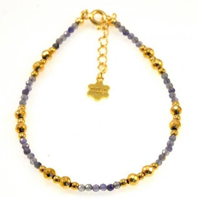 Bransoletka wykonana ze srebra próby 925 , pozłacanego 24 karatowym złotem Kamień: Labradoryt i Hematyt Rozmiar kamienia: 2mm / 3mm Długość: 17,5 cm + przedłużka do 19,5 cm