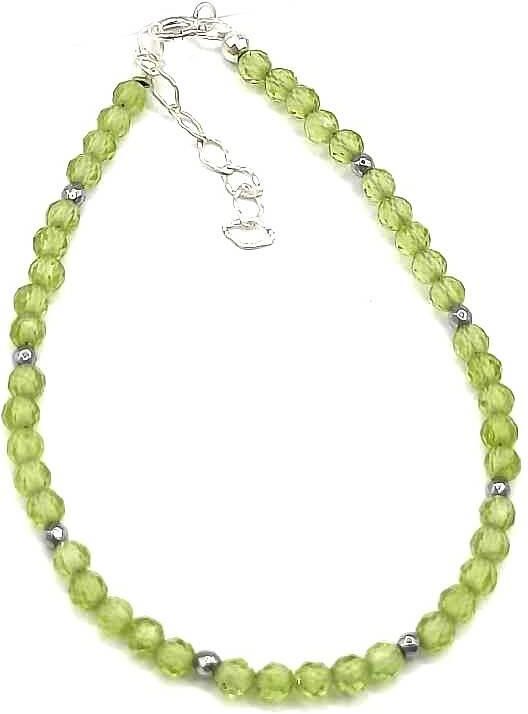 Bransoletka wykonana ze srebra próby 925,rodowanego Kamień: Oliwin+ Hematyt Rozmiar kamienia: 3/2 mm Długość: 17,5 cm Zapięcie: federing Bransoletka może być wykonana na gumce- prosimy o informację w uwagach do zamówienia Biżuteria ręcznie wykonana, produkt Polski