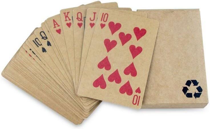 Karty do gry z papieru z recyklingu Stan: Nowy Materiał: Papier z recyklingu Wymiary: 9 x 6 x 2 cm Kolory: neutralny