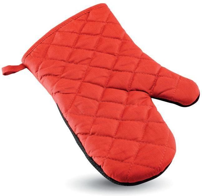 Rękawica kuchenna - Czerwona -prawa Materiał wykonania: Bawełna, Guma Wymiary: 31,5 x 16,5 x 2 [cm]