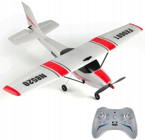 Zdalnie sterowany samolot model FX9601 wzorowany na samolocie Cessna 182 Idealny model dla początkujących oraz średnio zaawansowanych pilotów samolotów zdalnie sterowanych. - Model w wersji RTR - wyciągasz z pudełka montujesz skrzydło i podwozie i jest gotowy do lotu - 3 tryby latania - małe wychylenia lotek, średnie wychylenia, tryb acro - Żyroskop samopoziomujący lot samolotu - Silnik beszczotkowy - czyli moc oraz brak zbędnych przekładni - W pełni funkcjonalne stery oraz lotki jak w prawdziwym samolocie - Łatwy dostęp do akumulatora dzięki ściąganej przedniej obudowie - Rozpiętość skrzydeł 530 mm czyni samolot śred Wykazuje dobrą odporność na uderzenia i trwałe odkształcenia. Materiał EPP nawet w przypadku uszkodzenia jest bardzo łatwy w naprawie Z jednej strony bryła oparta na samolocie Cessna jest o łagodnym usposobieniu, pozwala to na spokojny stabilny lot przy nie dużej prędkości. W locie pomaga również wbudowany żyroskop. Z drugiej strony model z silnikiem bezsczotkowym o dużej mocy oraz możliwością włączenia trybu do wykonywania akrobacji pozwala na trochę szaleństwa na niebie. Dane techniczne : Główny materiał: gąbka EPP + plastik ABS Rozmiar samolotu: 530*435mm Rozmiar pudełka kolorowego: 555*240*115mm Masa samolotu: 95g Waga produktu z opakowaniem 598g Silnik bezszczotkowy 1503, 4800KV Akumulator 3,7V Lipo 500mAh 25C Czas lotu około 12 minut Czas ładowania około 45 minut Odległość sterowania: ≥200 metrów