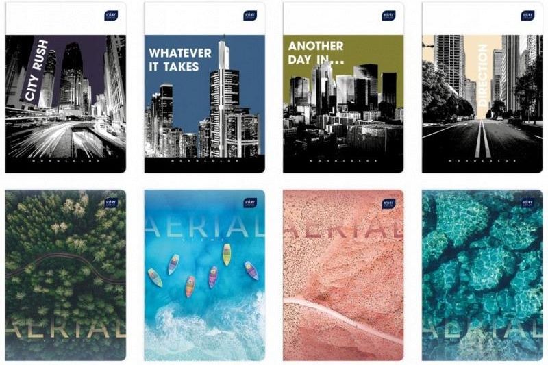 Okładka lakier UV. Zaokrąglone rogi. Duża różnorodność wzorów, dopasowana do grup docelowych. A5 / 80 kratka.