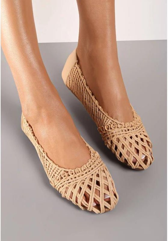 Balerinki Mayara ażurowe, wsuwane. Okrągły nosek, wykonane z plecionego materiału o różnej strukturze. Tył gładki. Te urocze baleriny dopasujesz do każdej letniej stylizacji. Możesz nosić je do zwiewnych kreacji boho, casualowych szortów albo klasycznych jeansów. Wakacyjny must have wszystkich fashionistek. Sugerujemy wybór rozmiaru o 1 mniejszego. - Kolor: Beżowy - Tęgość stopy: Neutralny - Rodzaj obcasa: Płaski - Wkładka/wyściółka: Ekoskóra - Materiał: Materiał tekstylny - Nosek buta: Okrągły - Zapięcie: Wsuwany/otwarty - Sezon: Letni
