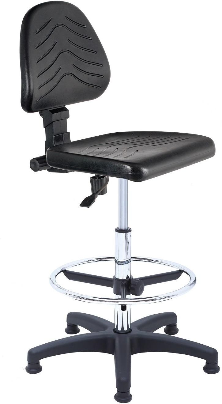 Specjalistyczne krzesło obrotowe na stopkach Ergowork PL Special 2 CHCPT Black. Antypoślizgowe i łatwozmywalne siedzisko (miękkie, odporne na ścieranie i działanie środków czyszczących) wykonane z poliuretanu. Podstawa na stopkach. Posiada regulację wysokości siedziska. Podnóżek - regulowana, chromowana obręcz. Dostępne w wersji z podłokietnikami lub bez. Krzesło wyposażone w mechanizm ruchowy CPT dzięki, któremu można łatwo dopasować produkt do własnych wymagań. Produkt z przeznaczeniem jako krzesło laboratoryjne, pomocnik do stania przy linii produkcyjnej, kasie sklepowej, gastronomii. Produkty ERGOWORK posiadają szereg certyfikatów i atestów - szczegóły niżej.