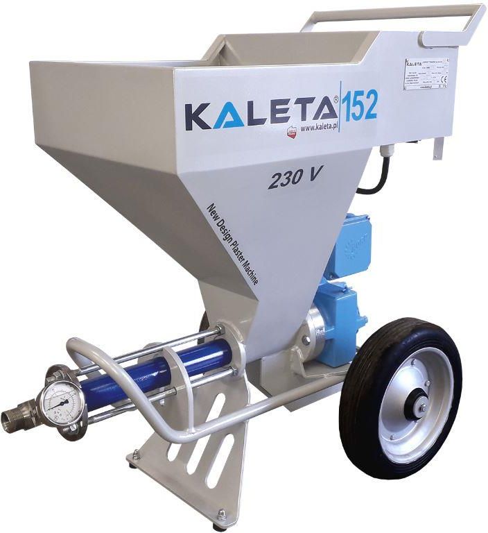 Charakterystyka produktu: Mały, kompaktowy i uniwersalny agregat KALETA-152 z zasialniem jednofazowym 230V. Przeznaczony jest do prac z masami szpachlowymi, gładziami gipsowymi itp. Obsługuje wszystkie rodzaje gotowych do użycia materiałów: powłoka wygładzająca, powłoka uzupełniająca, powłoka osłonowa, powłoka bitumiczna Termin i sposób dostawt dostawy: Czas realizacji zamówienia na Agregat tynkarski Kaleta wynosi od 3 do 30 dni roboczcyh. Agregat tynkarski wysyłany jest firmą spedycyjną DHL Istnieje możliwość dostarczenia urządzenia pod dowolnie wskazany adres na terenie całego kraju. Koszt logistyczny jest darmowy. Do każdego zakupionego agregatu zapewniamy darmowe szkolenie z obsługi urządzenia, które zakończone jest certyfikatem dającym uprawniania do korzystania z agregatu na placu budowie. Zastosowanie: Agregat przeznaczony do nakładania: Mas szpachlowych Gładzi gipsowych Powłok wygładzających Powłok uzupełniających Powłok osłonowych Powłok bitumicznych Dane techniczne: Napięcie: 230V/50 Hz Moc silnika: (zmienno obr.) 2,2 kW Kabel przyłączeniowy: min. 3x1,5 mm² Max wydajność: 6 l/min Max ciśnienie tłoczenia: 100 bar Wymiary: 900x520x860 mm Pojemność zbiornika: 57 litrów Waga: 85 kg Wyposażenie: Wózek kpl 1 szt Panel sterowania 1 szt Wąż zaprawa 20 1x9 m Pistolet natryskowy 1 szt Pompa ślimakowa 1 kpl Piłeczka czyszcząca 1 szt Klucz płaski 1 szt Przewód sterowniczy 1x10 m DTR 1 szt