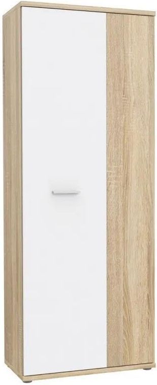 Szafa na buty NET106 MS151-Q45F firmy FORTE Szafa na buty to nie tylko stylowy, ale i funkcjonalny mebel w każdym dobrze urządzonym przedpokoju. Wykonana w dekorze Dębu Sonoma i Białym Uni dopasuje się do każdej aranżacji wnętrza. Opis systemu Nowoczesne i oryginalne połączenie tradycyjnego białego koloru z dębem sonoma rozjaśni pomieszczenie oraz doda mu lekkości. Minimalistyczny uchwyt w kolorze aluminium podkreśla stylowy design szafy. Meble to doskonały wybór dla wielkomiejskiego stylu życia i zapracowanych osób, które szukają w swoim mieszkaniu chwil pełnych relaksu i odpoczynku. Szafa na na buty NET106 idealnie pasuje do pozostałych mebli, które mogą Państwo zakupić na naszych innych aukcjach. Mebel w paczkach przeznaczony do samodzielnego montażu (akcesoria montażowe wraz z czytelną instrukcją w komplecie). Wybarwienie (Q45F) Korpus: dąb sonoma Front: biały / dąb sonoma Wymiary szerokość: 68,9cm wysokość: 179,1cm głębokość: 34,8cm Materiał korpus i fronty: płyta meblowa laminowana Dodatkowe informacje Dekor odwzorowujący naturalne drewno nada pomieszczeniu świeżości i elegancji Wbudowane półki zagwarantują odpowiednio dużo miejsca do rozmieszczenia obuwia i innych akcesoriów Minimalistyczny uchwyt w kolorze aluminium podkreśla stylowy design szafy Maksymalne obciążenie półki do 5 kg Prosty montaż i łatwa konserwacja powierzchni W zestawie elementy do montażu ściennego Szafa wykonana z wysokiej jakości płyty wiórowej Grubość płyt grubość boku:15 mm grubość frontu z płyty:15 mm grubość wieńca dolnego:22 mm grubość wieńca górnego: 22 mm GALERIA ZDJĘĆ