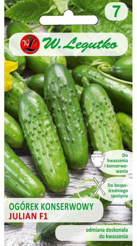 Uprawa Ogórka - w sam raz dla hobbystów! Ogórek Konserwowy Julian Mieszaniec F1 Cucumis sativus Jak siać? Ogórek wysiewa się bezpośrednio do gruntu w maju na głębokość 2-3cm po 2-3 nasiona w jednym miejscu, w rzędach o odległości 80-100x15cm od siebie. Warunki uprawy: Miejsce słoneczne niezacienione, osłonięte od wiatru. Ciepło otoczenia dla odpowiedniego wzrostu zaczyna się od 18°C aż do 30°C. Próchnicza wilgotna przepuszczalna gleba o odczynie pH między 6,0 - 7,2, podłoże szybko nagrzewające się oraz nawóz obornikowy i/lub kompost stwarzają środowisko w sam raz dla najlepszych plonów ogórków. Zbiór: Między 15 lipca, a 15 września Praktyczne ciekawostki: Azjatycka roślina jednoroczna z rodziny dyniowatych do uprawy na działce i na polu. Ogórek potrzebuje odpowiedniego podłoża nawożonego obornikiem, przygotowanego rok wcześniej po zbiorach w okresie jesiennym. Już w trakcie wzrostu, po wysiewie, dba się o roślinę dokarmiając ją co dwa tygodniem nawozem wieloskładnikowym do ogórków. Warzywo zdecydowanie wymaga częstych, ale ostrożnych zabiegów pielęgnacyjnych w postaci spulchniania ziemi i odchwaszczania ułatwiając roślinie prawidłowy wzrost i rozwój oraz odpowiednie nawadnianie, zwłaszcza w czasie upałów. Najkorzystniej jest podlewać ogórki rankiem letnią wodą, minimalizując ryzyko wystąpienia poważniejszych chorób, które mogą rozwijać się w chłodną noc, kiedy podłoże jest wciąż bardzo wilgotne. Nierzadko ogórki atakują patogeny w formie mikroorganizmów oraz tych dostrzegalnych gołym okiem, które zwalcza się z pomocą środków na szkodniki lub środków grzybobójczych. Dobrym sąsiadem dla ogórka jest koper, cebula, sałata, groch, fasola, buraki lub szpinak. Gorzej znoszą obecność koło siebie pomidorów, ziemniaka czy rzodkiewki. Ale już jako przedplon wymienione wcześniej warzywa sprawdzą się znakomicie, dodając do listy jeszcze zboża. W przy-padku każdej dyniowatej, nie mogą być one uprawiane po sobie, zachowując długą przerwę do 5 lat. Liście, które zaraz po zbiorze mogłyby przenosić choroby lub szkodniki, zaleca się uprzątnąć z pola / ogródka i spalić.