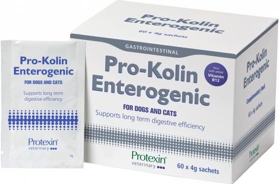 Suplement wspierający zdrowie przewodu pokarmowego.[et_pb_section fb_built="1" _builder_version="4.24.0" custom_padding="0px||0px||false|false" global_colors_info="{}"][et_pb_row _builder_version="4.24.0" _module_preset="default" global_colors_info="{}"][et_pb_column type="4_4" _builder_version="4.24.0" _module_preset="default" global_colors_info="{}"][et_pb_heading title="Suplement wspierający zdrowie przewodu pokarmowego" _builder_version="4.24.0" _module_preset="default" title_level="h2" title_text_color="gcid-5fef443d-fc22-4851-810f-67dc8e631d66" custom_margin="||0px||false|false" hover_enabled="0" global_colors_info="{%22gcid-5fef443d-fc22-4851-810f-67dc8e631d66%22:%91%22title_text_color%22%93}" sticky_enabled="0"][/et_pb_heading][/et_pb_column][/et_pb_row][et_pb_row _builder_version="4.24.0" _module_preset="default" custom_padding="0px|||||" global_colors_info="{}"][et_pb_column type="4_4" _builder_version="4.24.0" _module_preset="default" global_colors_info="{}"][et_pb_text _builder_version="4.24.0" _module_preset="default" hover_enabled="0" global_colors_info="{}" sticky_enabled="0"] Pro-Kolin Enterogenic działa na rzecz wzmocnienia bariery śluzowej jelit, wspierając układ odpornościowy jelit oraz normalizując równowagę między dobrymi a złymi bakteriami w jelitach. Składniki aktywne Alpha-glukan butyrogeniczny: Produkuje maślan, kluczowy dla zdrowia jelit. MPS Protect: Wzmacnia śluzówkę jelitową. Kobalamina (witamina B12): Utrzymuje prawidłowy poziom witaminy B12. Probiotyki: Enterococcus faecium wspiera równowagę mikroflory. Prebiotyki: Zawiera Preplex®, MOS, i beta-glukany, wspierające rozwój korzystnych bakterii. Sztuczne aromaty: Wołowina i kurczak poprawiają smak. Dostępność 30 saszetek po 4 g Stosowanie Koty <5kg - 1/2 saszetki - Codziennie Psy 5-15kg - 1 saszetka – Codziennie 15-35kg - 2 saszetki - Codziennie >35kg - 3 saszetki - Codziennie Kluczowe korzyści Wzmacnia i regeneruje śluzówkę jelitową. Pomaga utrzymać zdrową równowagę mikroflory jelitowej. Wspiera profilaktykę problemów trawiennych. Poprawia komfort życia zwierzęcia poprzez zdrowy układ trawienny. Kiedy stosować? Pro-Kolin Enterogenic jest idealny dla psów i kotów w każdym wieku, szczególnie tych z tendencją do problemów jelitowych lub osłabioną mikroflorą jelitową. [/et_pb_text][/et_pb_column][/et_pb_row][/et_pb_section]