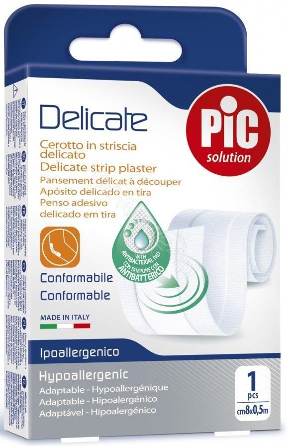 PiC Delicate plaster antybakteryjny o wymiarach 8 cm x 50 cm to wyrób medyczny w formie plastra do cięcia. Produkt szczególnie polecany dla osób o wrażliwej i delikatnej skórze. Plaster jest w tradycyjnym, uniwersalnym, białym kolorze. Ponadto, materiał, z którego wykonano plaster jest przewiewny, …