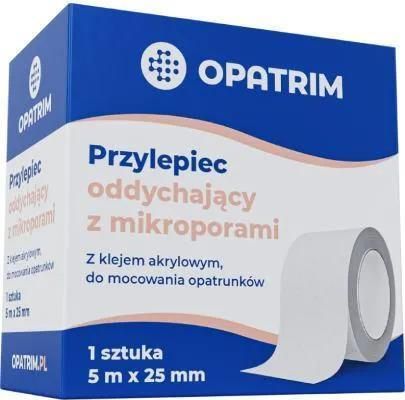 Opis: Opatrim przylepiec oddychający z mikroporami – to wyrób medyczny, który pomaga w mocowaniu opatrunków. Produkt z klejem akrylowym. . Opis: Opatrim przylepiec oddychający z mikroporami – to wyrób medyczny, który pomaga w mocowaniu opatrunków. Produkt z klejem akrylowym. . Zawartość opakowania: Wymiary: 5 m x 25 mm . Ostrzeżenia i środki ostrożności: Nie należy przekraczać zalecanej dawki. Jeżeli dolegliwości nie ustępują po 7 dniach należy skonsultować się z lekarzem. Nie należy stosować produktu po upływie terminu ważności zamieszczonego na opakowaniu. Nie zaleca się stosowania preparatu u dzieci. Przechowywać w miejscu niewidocznym i niedostępnym dla dzieci. Nie stosować u osób uczulonych na którykolwiek składnik produktu. Kobiety w ciąży lub karmiące piersią przed zastosowaniem powinny skonsultować się z lekarzem lub farmaceutą. .