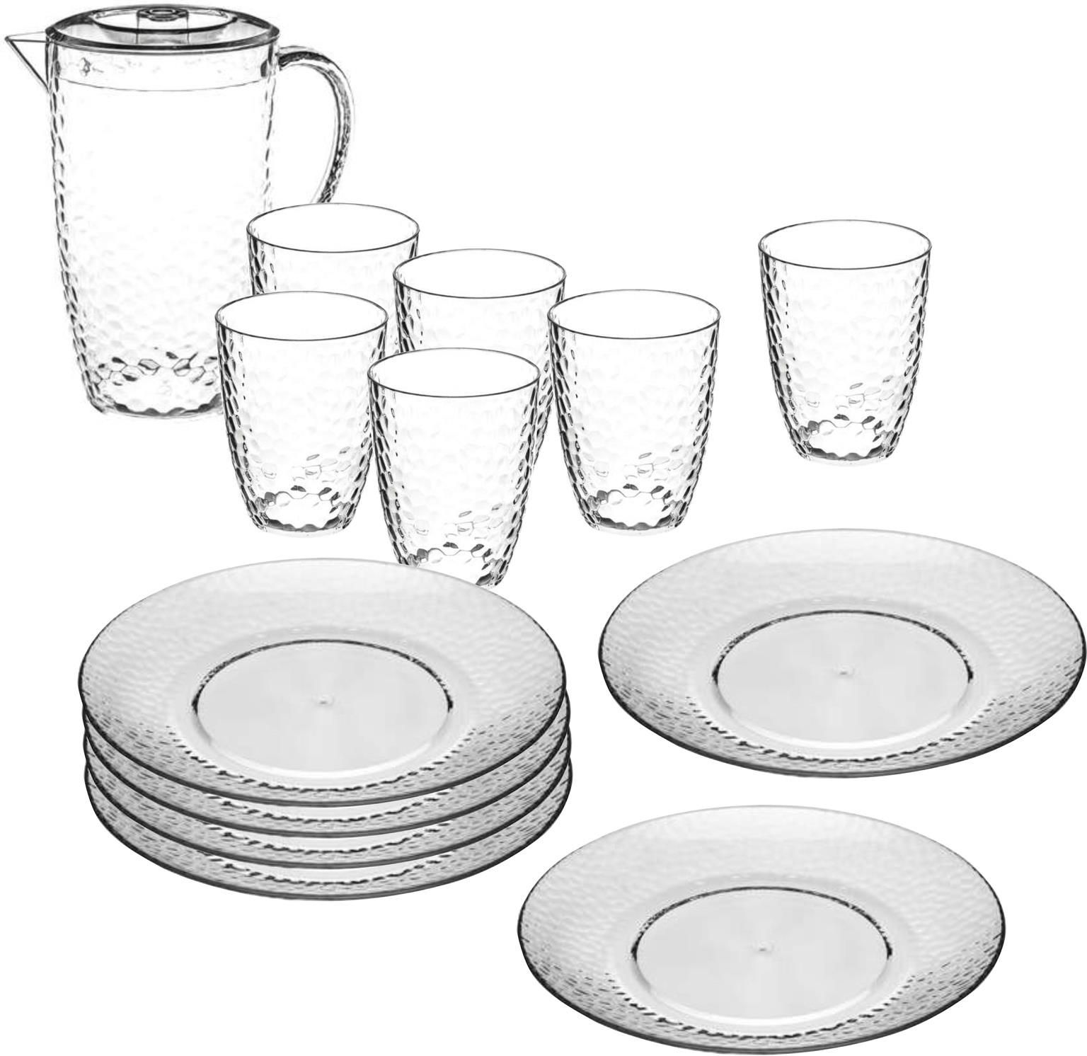 Zestaw Estiva: Funkcjonalność i trwałość podczas letnich obiadów Zestaw zawiera 6 talerzy, 6 szklanek i dzbanek 2l. Dzbanek z przykrywką Estiva plastikowy, szklanki oraz talerze to niezastąpione elementy Twojej letniej kolekcji. Wykonan z trwałego polistyrenu, gwarantuje nie tylko wygodne korzystanie, ale także długotrwałą użytkowość. Solidna konstrukcja sprawia, że nie musisz obawiać się uszkodzeń czy stłuczeń, co czyni go idealnym wyborem na wszelkiego rodzaju spotkania oraz imprezy rodzinne. Posiadając pojemność 2 litrów, dzbanek doskonale sprawdzi się do serwowania zimnych napojów, soków, czy lemoniady. Szklanki idealnie pasujące do dzbanka o pojemności 380 ml bedą idealne do napojów w gorące dni. Zestaw talerzyków pozwoli na delektowanie się letnim deserem na łonie natury. W skład zestawu wchodzi Dzbanek 2l 6 szklanek 380 ml pojemności 6 talerzy 20 cm Zobacz inne elementy z serii Estiva i uzupełnij swoją kuchenną kolekcję o praktyczne i funkcjonalne akcesoria O tym warto pamiętać! Wykonany z trwałego polistyrenu, zestaw Estiva jest odporny na uszkodzenia, co zapewnia jego długą żywotność. Posiada pojemność dzbanek 2 litrów, co czyni go idealnym do serwowania większych ilości napojów podczas spotkań z rodziną i przyjaciółmi. Sześć talerzyków i 6 szklanek idealnie sprawdzi się podczas grillowania Doskonale sprawdza się podczas letnich pikników i grillowania na świeżym powietrzu, dzięki swojej wszechstronności i praktyczności. Estetyczny design zestawu dodaje elegancji i stylu każdemu przyjęciu, nadając mu wyjątkowego charakteru.