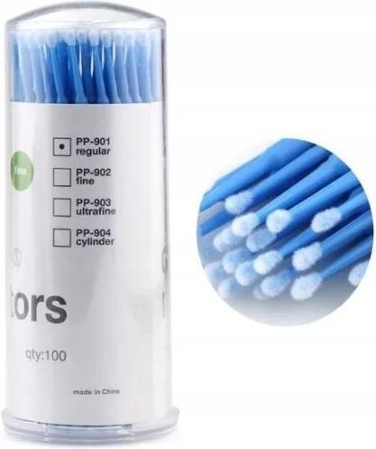 APLIKATORY DO RZĘS BEZWŁÓKIENKOWE Aplikatory bezwłókienkowe tzw. mikroszczoteczki to profesjonalny produkt stosowany do oczyszczania rzęs, usuwania nadmiaru kleju jak również precyzyjnego usuwania makijażu i tuszu.Końcówka pokryta jest specjalna powłoka z mikrofibry, która nie wchłania płynów, dzięki czemu zużywa się mniej produktu.Higieniczne akcesorium podczas przedłużania rzęs.Aplikatory bezwłókienkowe pozwolą na oszczędność czasu i kosztów. Są wygodne w użyciu oraz przyjemne w dotyku. Specjalna struktura materiału nie pozostawia włókienek. Praca z aplikatorami jest przyjemna i wygodna. Aplikatory pozwolą na precyzyjne oczyszczenie rzęs, a w rezultacie ich dokładniejsze i trwalsze przyklejenie.W zestawie 100 sztuk w wygodniej tubie z otworem na spodzie.