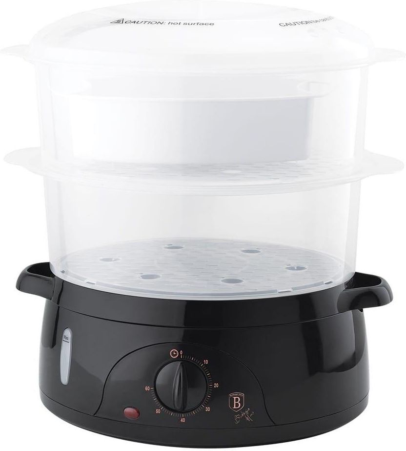Parowar Berlinger Haus BH 9378 CO WYRÓŻNIA NASZ PRODUKT 1✔️Zdrowe gotowanie na parze - zachowanie wartości odżywczych i smaku potraw przy ograniczeniu spożycia tłuszczu. Programator czasowy 60 minut, wskaźnik poziomu wody oraz możliwość napełniania z obu stron - maksymalna wygoda użytkowania. Dwie komory oraz dodatkowy pojemnik z tworzywa sztucznego - wielofunkcyjność i praktyczność. Możliwość mycia wszystkich części parowych w zmywarce - łatwe utrzymanie czystości. ZDROWA KUCHNIA W TWOIM DOMU! Parowar Berlinger Haus BH 9378 z kolekcji Black Rose to rewolucyjne urządzenie, które pozwoli Ci przygotowywać pyszne i zdrowe posiłki. Dzięki gotowaniu na parze zachowasz maksimum wartości odżywczych oraz smak potraw, a jednocześnie ograniczysz spożycie tłuszczu. MAKSYMALNA WYGODA UŻYTKOWANIA! Urządzenie wyposażone jest w programator czasowy 60 minut, umożliwiający precyzyjne ustawienie czasu gotowania. Dodatkowo, wskaźnik poziomu wody pomoże Ci kontrolować ilość płynu w zbiorniku, a możliwość napełniania z obu stron ułatwi obsługę. WIELOFUNKCYJNOŚĆ I PRAKTYCZNOŚĆ! Parowar posiada dwie komory, dzięki czemu możesz jednocześnie przygotować różne składniki posiłku. Dodatkowo, w zestawie znajduje się praktyczny pojemnik z tworzywa sztucznego, idealny do gotowania kasz, ryżu lub innych produktów sypkich. ŁATWE UTRZYMANIE CZYSTOŚCI! Wszystkie części parowych (z wyjątkiem podstawy) można bez problemu myć w zmywarce, co znacznie ułatwi utrzymanie higieny i zapewni długą żywotność produktu. SPECYFIKACJA Stan: Nowy Marka: Berlinger Haus Kolor dominujący: czarny Model: BH-9378 Liczba pojemników: 2 Moc: 800 W Pojemność: 6 l Programator czasowy: elektroniczny Funkcje urządzenia: podtrzymywanie temperatury Cechy dodatkowe: Długość przewodu zasilającego: 100 cm, Wskaźnik poziomu wody, dodatkowy biały pojemniczek Szerokość produktu: 30 cm Wysokość produktu: 32 cm Głębokość produktu: 19 cm Waga produktu z opakowaniem jednostkowym: 3 kg Kod producenta: BH-9378 Stan opakowania: oryginalne Komunikacja: lampka kontrolna, minutnik Bezpieczeństwo: automatyczny wyłącznik, nienagrzewające się uchwyty, nóżki antypoślizgowe, zabezpieczenie przed przegrzaniem Załączone wyposażenie: pojemnik do gotowania sypkich produktów, inne
