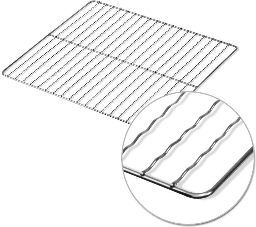 Półka do wędzarni UW - 150 Profesjonalny ruszt do wędzarni wykonany z drutu nierdzewnego. Ruszt doskonale nadaje się do wędzenia ryb, kiełbas czy serów. Zaletą półek jest to, że nie stwarza ryzyka, że żywność zerwie się lub spadnie podczas wędzenia. Parametry techniczne: materiał - stal kwasoodporna szerokość - 480mm wysokość - 400mm poprzeczka φ (fi) - 3mm rama φ (fi) - 4mm waga - 0,6kg