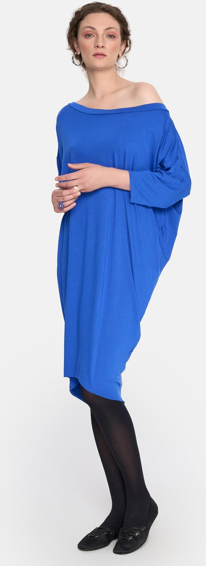 KOLOR: CHABROWY Wiskoza 96%, elastan 4%. Dzianina wiskozowa z elastanem. GRAMATURA: 190 G/M2 Sukienka oversize o długości przed kolano, dłuższa z tyłu. Dekolt z ciekawym podwójnym przeszyciem, w kształcie szerokiej łódki, lekko opadający na ramiona. Zaprojektowana i uszyta w Polsce. • wąskie rękawy o długości ¾, • długość przed kolano, • luźny krój, • krótsza z przodu, • dekolt łódka, • dekolt i dół sukienki zakończony na surowo, bez podwinięcia. WYMIARY (w centymetrach, mierzone na płasko): XS: szerokość w biuście 63, szerokość w biodrach 56, długość rękawa 21, szerokość dołu 42, długość całkowita 85/98, S: szerokość w biuście 67, szerokość w biodrach 58, długość rękawa 23, szerokość dołu 44, długość całkowita 90/102, M: szerokość w biuście 71, szerokość w biodrach 60, długość rękawa 24, szerokość dołu 46, długość całkowita 92/104, L: szerokość w biuście 77, szerokość w biodrach 65, długość rękawa 24, szerokość dołu 51, długość całkowita 94/108.