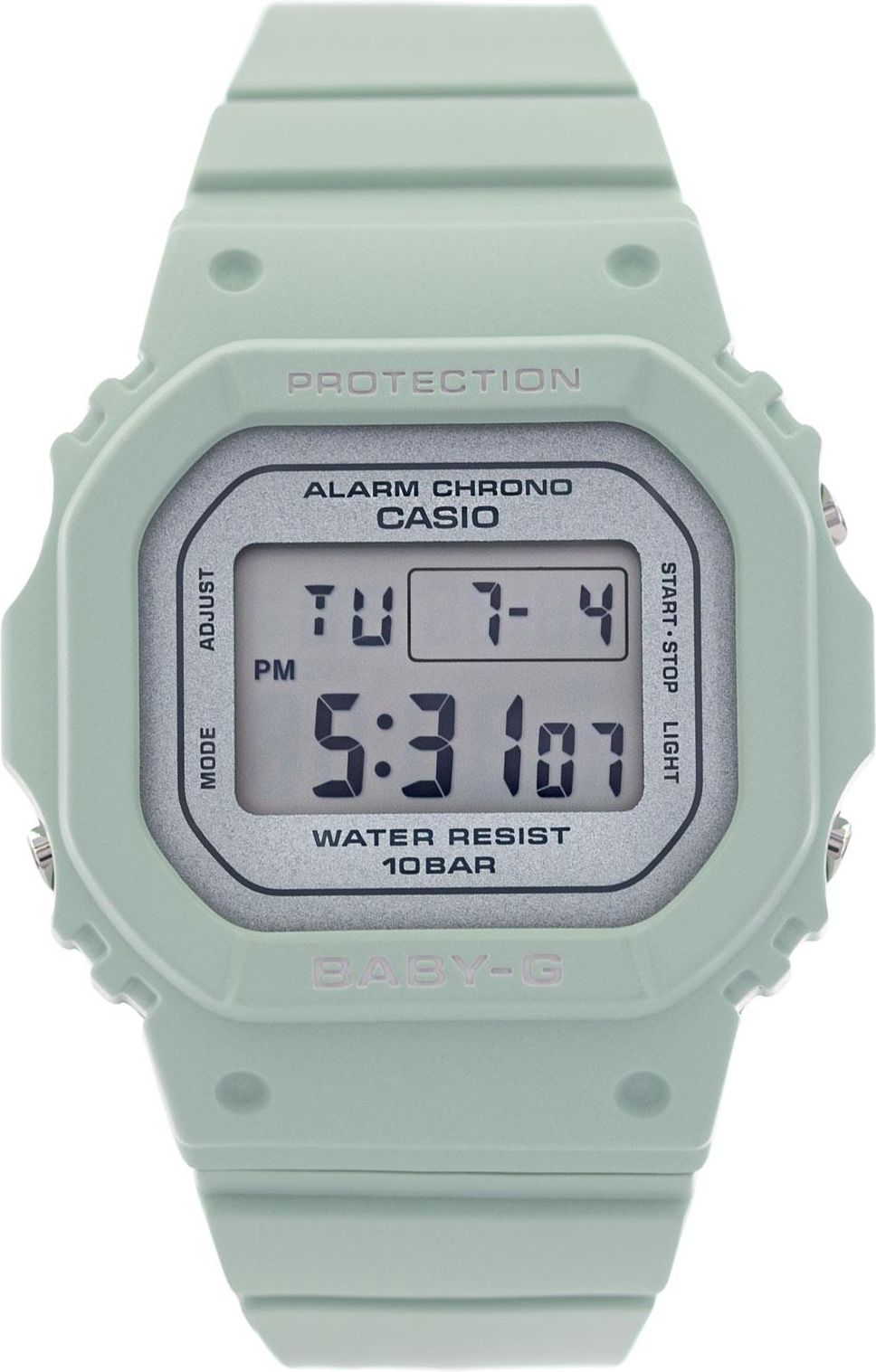 Zegarek damski G-SHOCK Baby-G BGD-565SC-3ER Styl Sportowy Kolekcja Baby-G MEchanizm Elektroniczny Wodoszczelność 100 m Materiał koperty Tworzywo Materiał paska Tworzywo Szkło Mineralne Grubość koperty 11 mm Wysokość koperty 42 mm Szerokość koperty 38 mm Kolor paska Zielony Kolor tarczy Szary-cyfrowy Kolor koperty Zielony Indeksy/cyfry Wyświetlacz cyfrowy